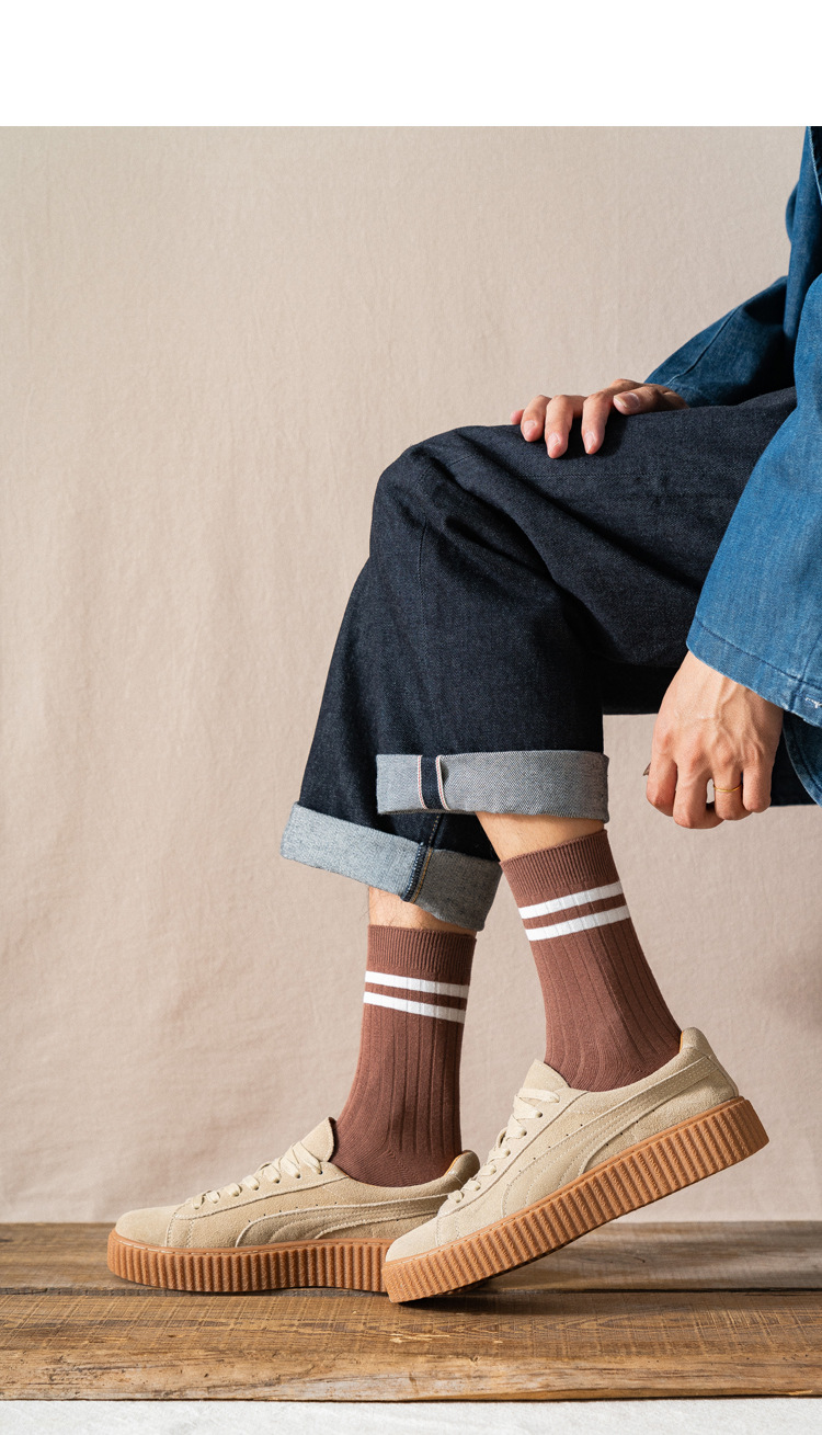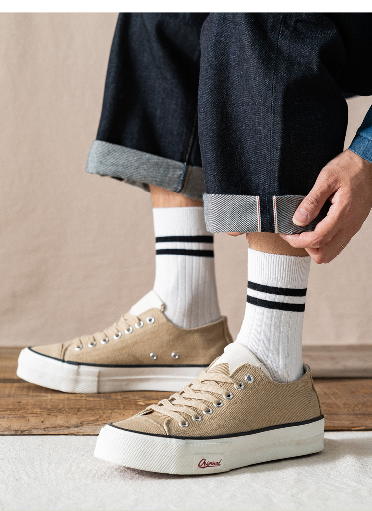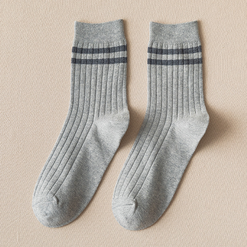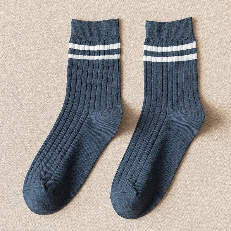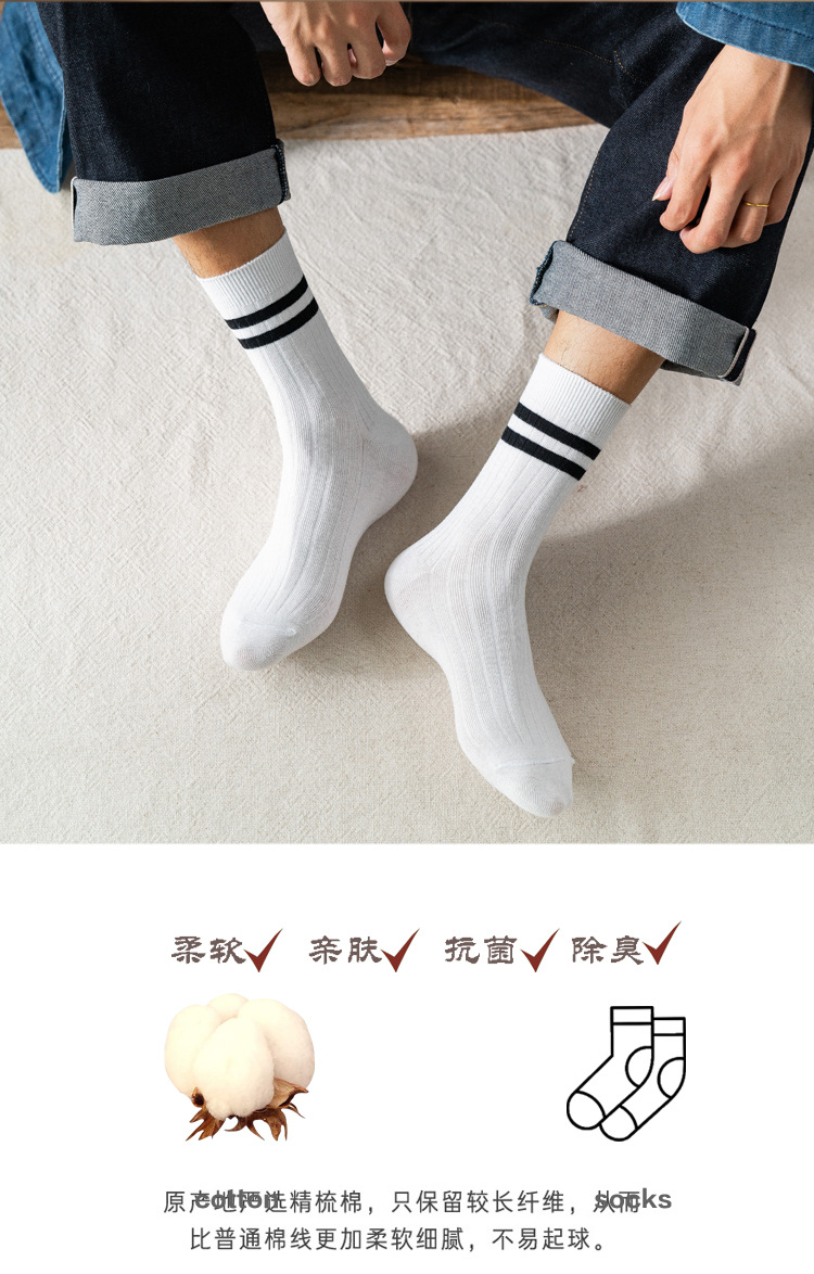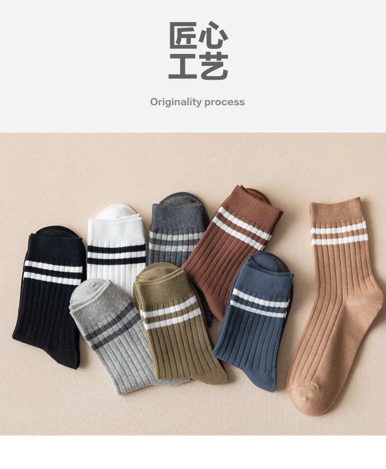 중간 배럴 양말 남성용 봄과 가을 면화 땀 흡수 탈취제 통기성 면화 일본 가을과 겨울 긴 두꺼운 줄무늬 양말