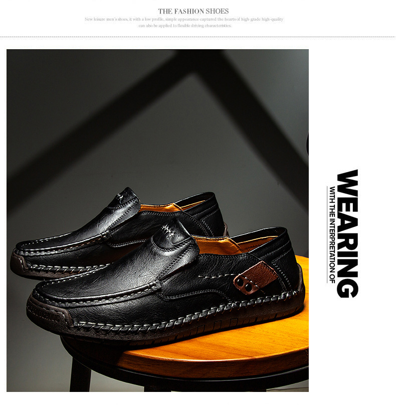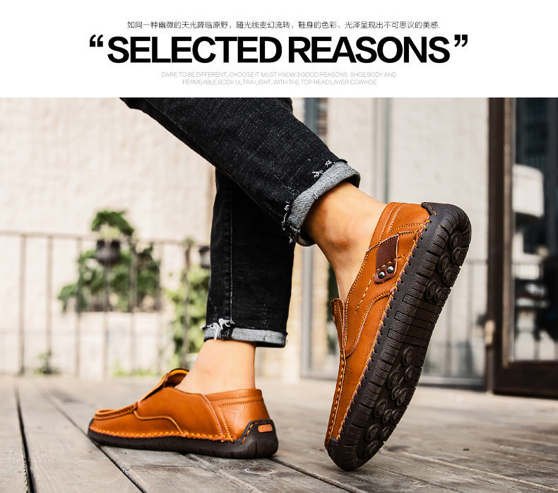 국경 간 반 관리 핸드 스티치 남성 신발 야외 캐주얼 신발 슬립 온 플랫 가죽 신발 로우 탑 플러스 사이즈 로퍼스토어 가기
