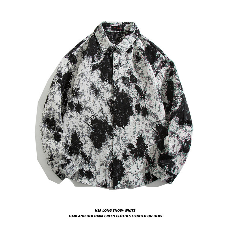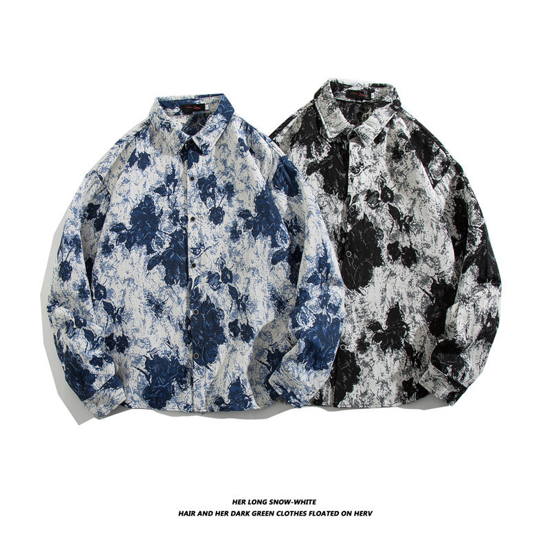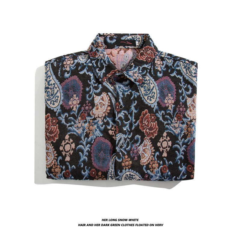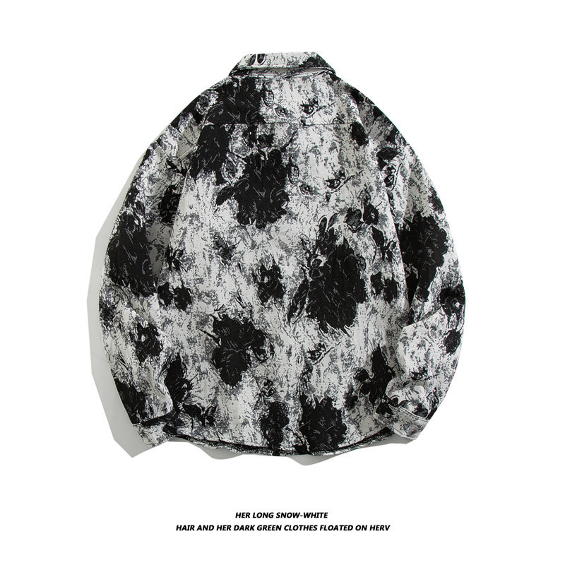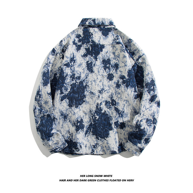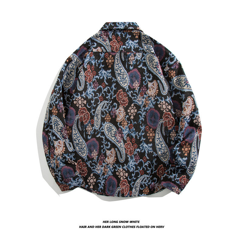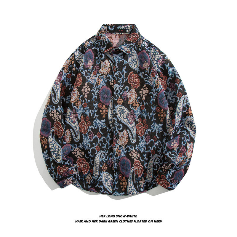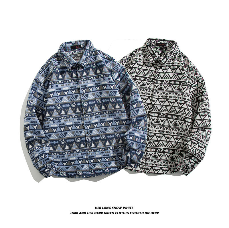 빈티지 에스닉 스타일 셔츠 남성용 루즈핏 가을 겨울 일본풍 모직 코트 레트로 긴팔 셔츠 트렌디 루즈핏스토어 가기