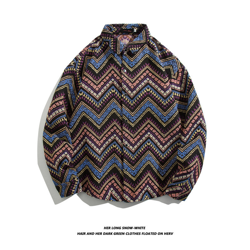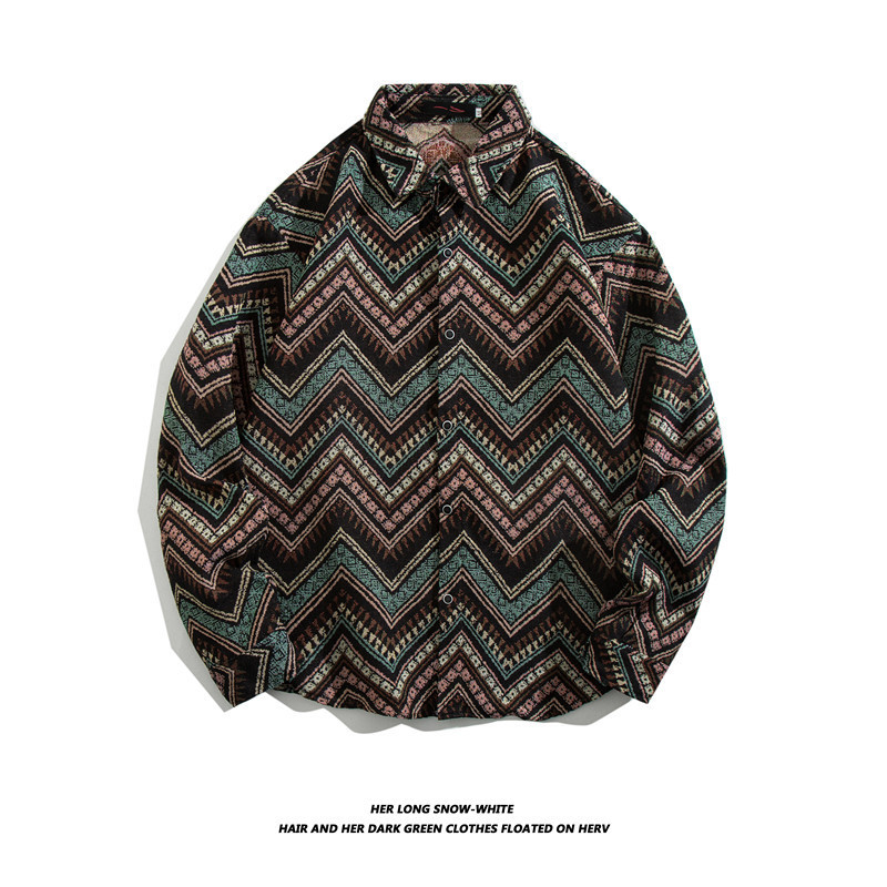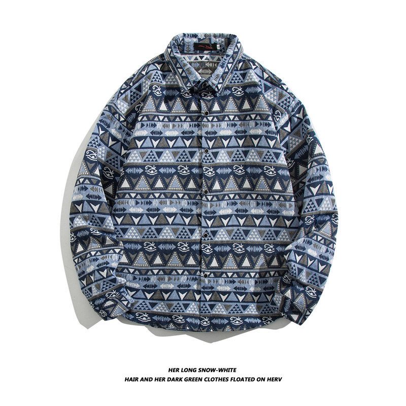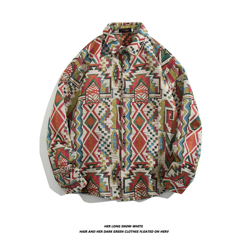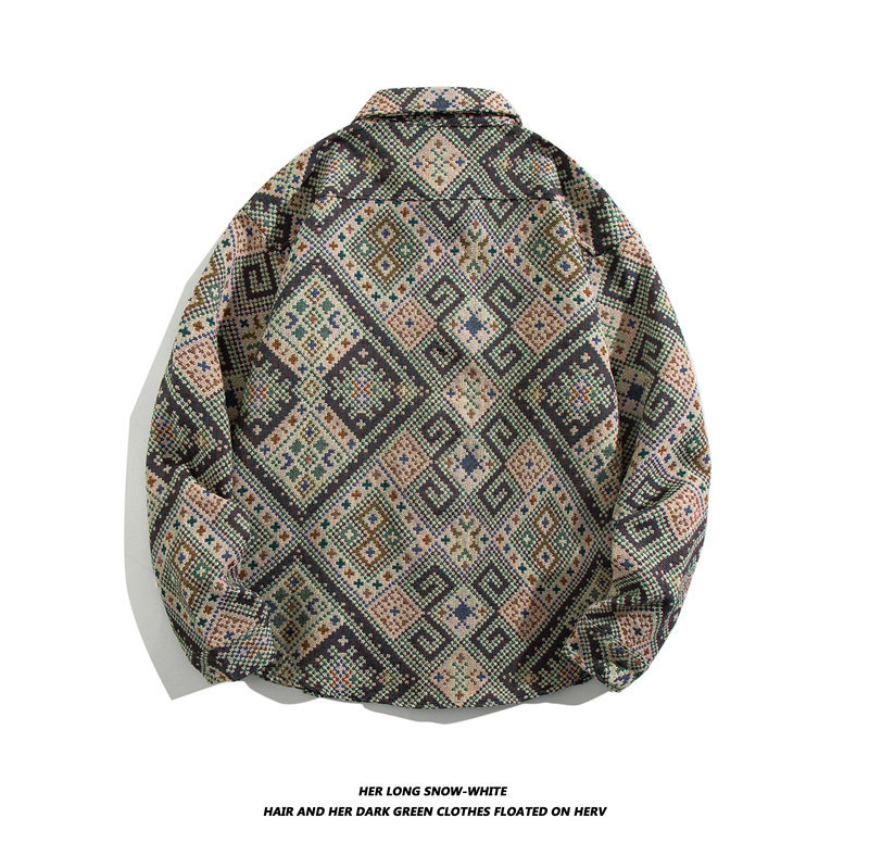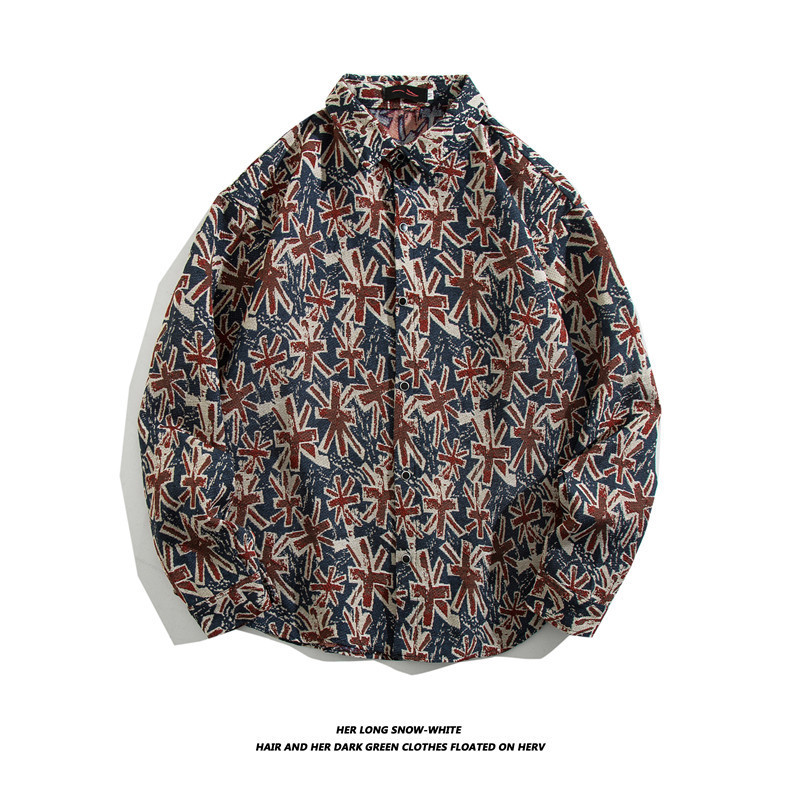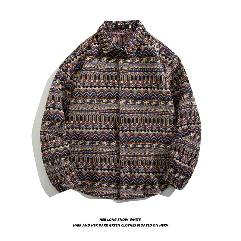 빈티지 에스닉 스타일 셔츠 남성용 루즈핏 가을 겨울 일본풍 모직 코트 레트로 긴팔 셔츠 트렌디 루즈핏