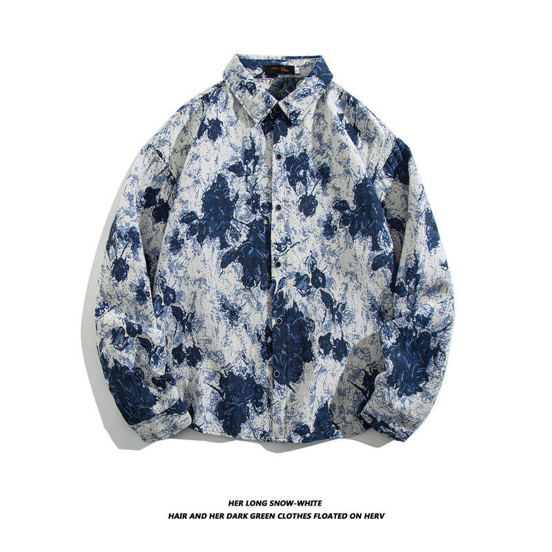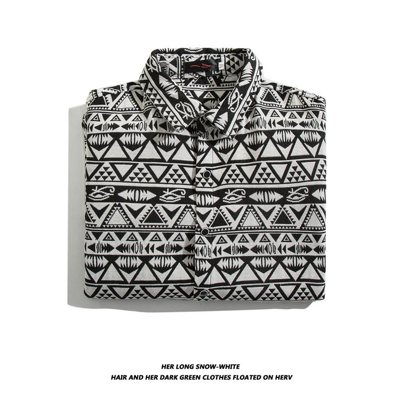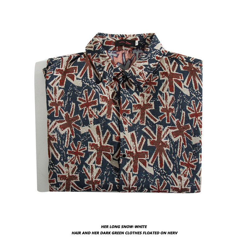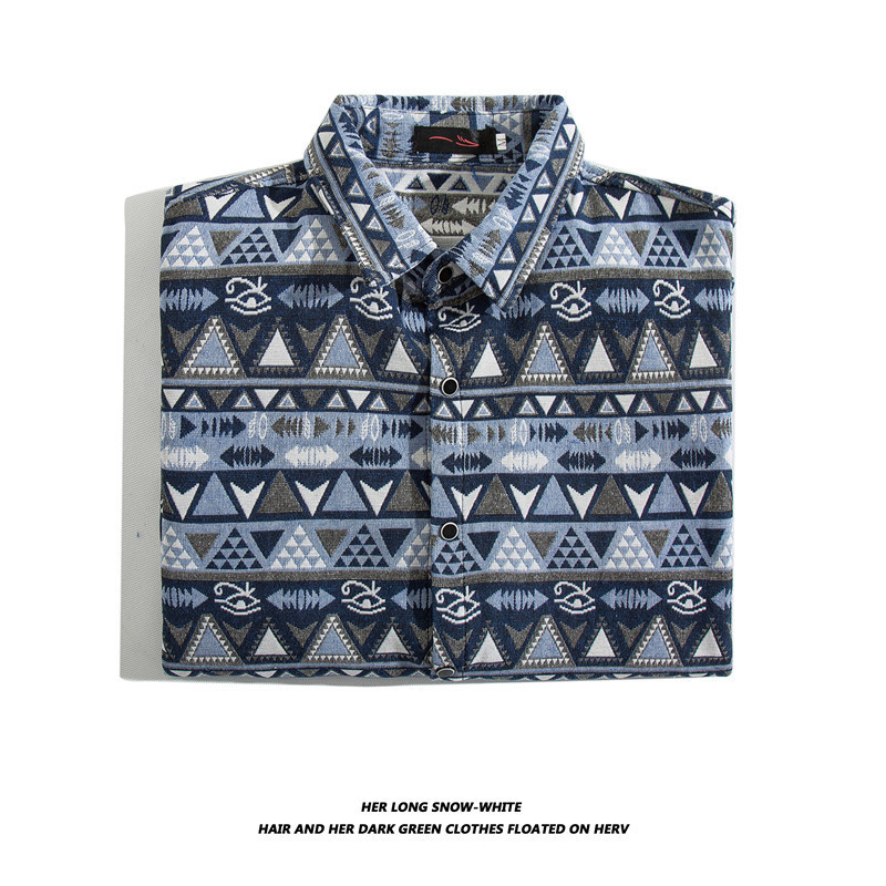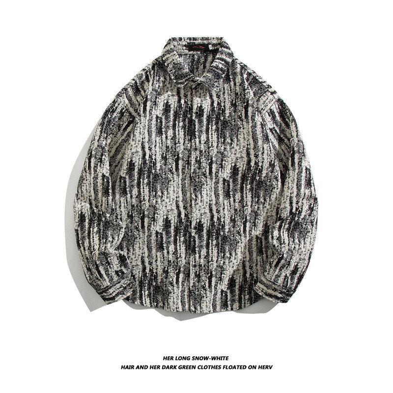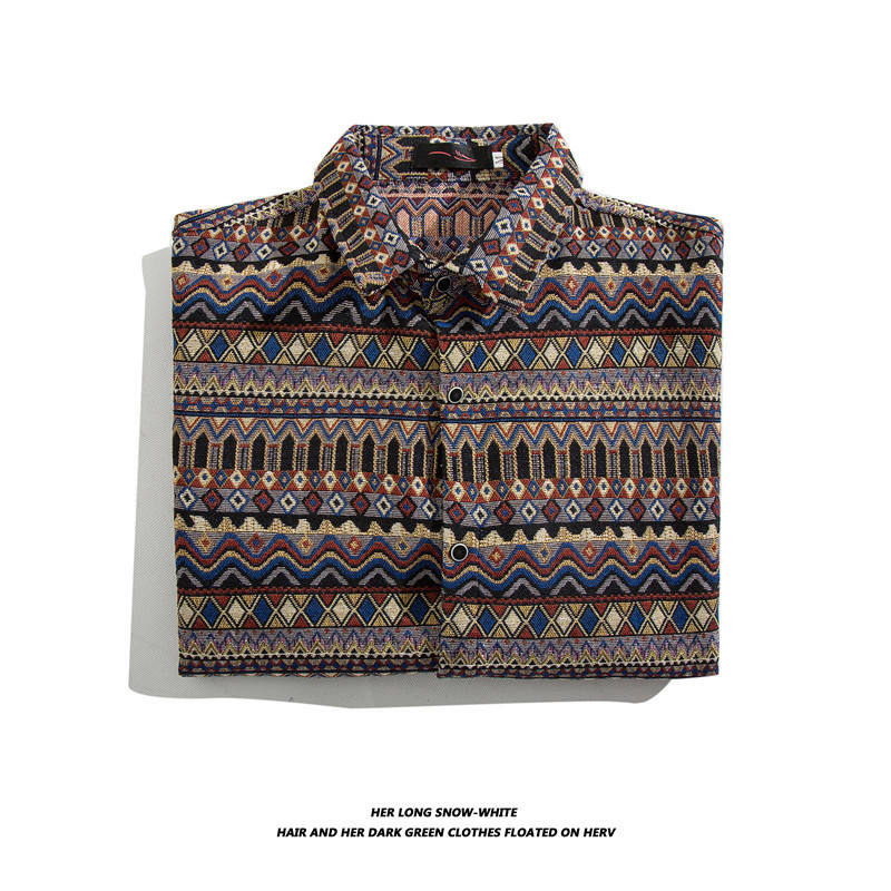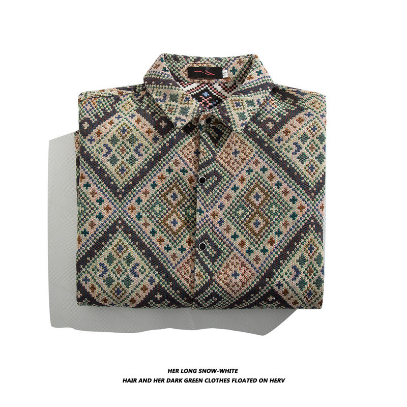 빈티지 에스닉 스타일 셔츠 남성용 루즈핏 가을 겨울 일본풍 모직 코트 레트로 긴팔 셔츠 트렌디 루즈핏