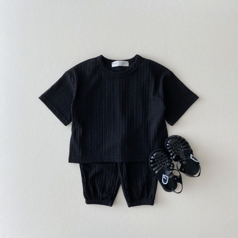 한국식 여름 중소 아동복 심플 편안한 캐주얼 반팔 세트 베이비 쿨 반팔 홈웨어 투피스 세트