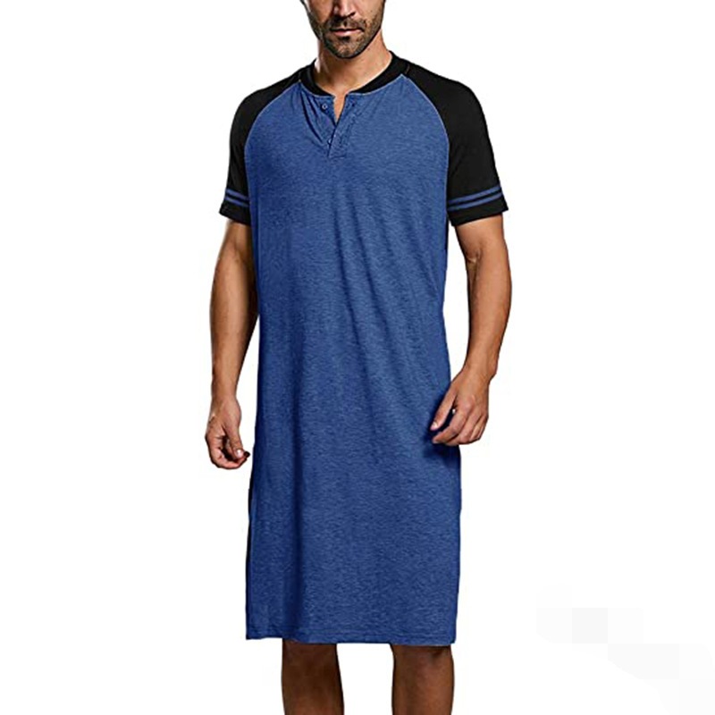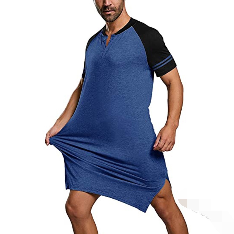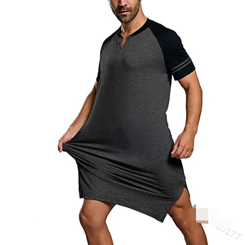 유럽과 미국 2023 새로운 남성 풀오버 컬러 매치 반팔 가정복 라운드 넥 느슨한 캐주얼 하단 분할 잠옷스토어 가기