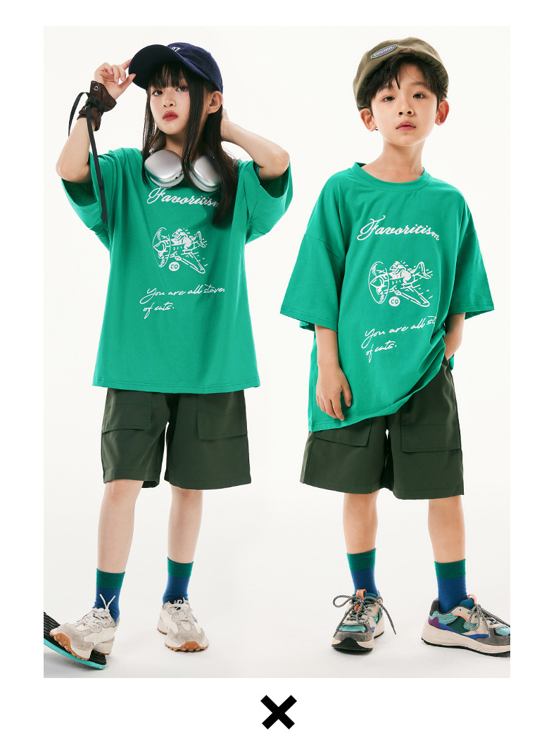 어린이 힙합 패션 의류 소년 힙합 패션 브랜드 어린이 의류 짧은 소매 여름 공연 의류 소녀 온라인 인기 튀김 거리 세트스토어 가기