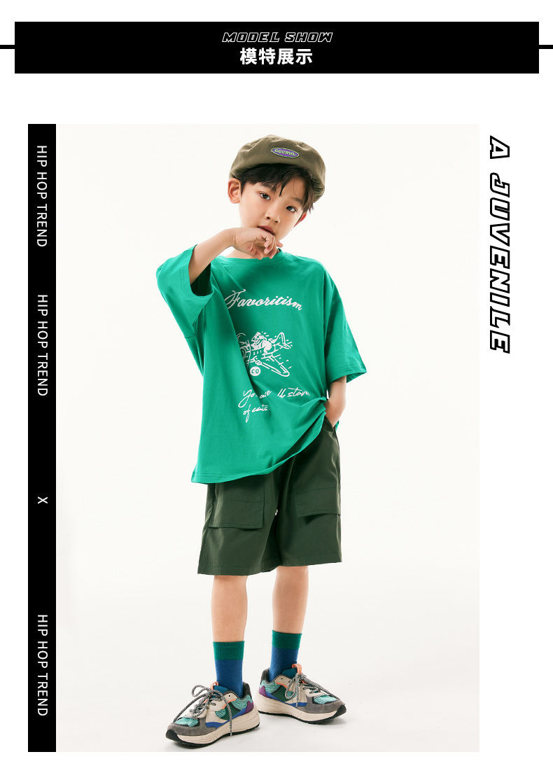 어린이 힙합 패션 의류 소년 힙합 패션 브랜드 어린이 의류 짧은 소매 여름 공연 의류 소녀 온라인 인기 튀김 거리 세트