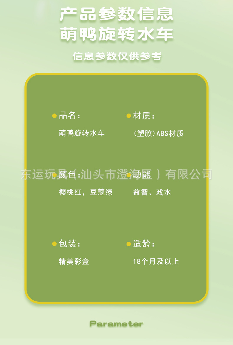 【商品描述】眼睛旋转萌鸭水车