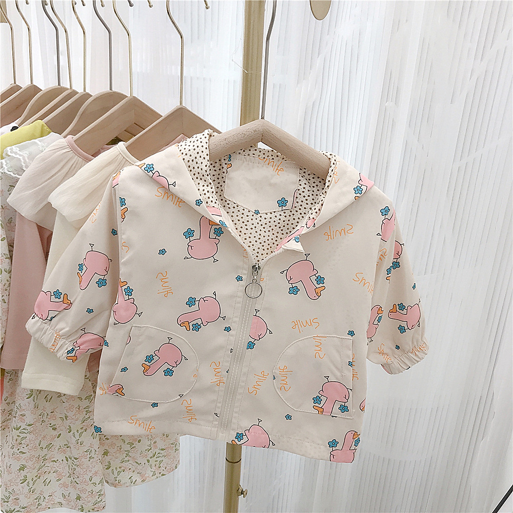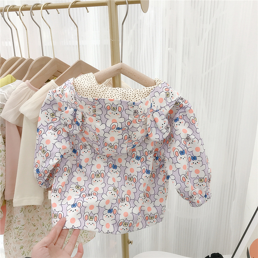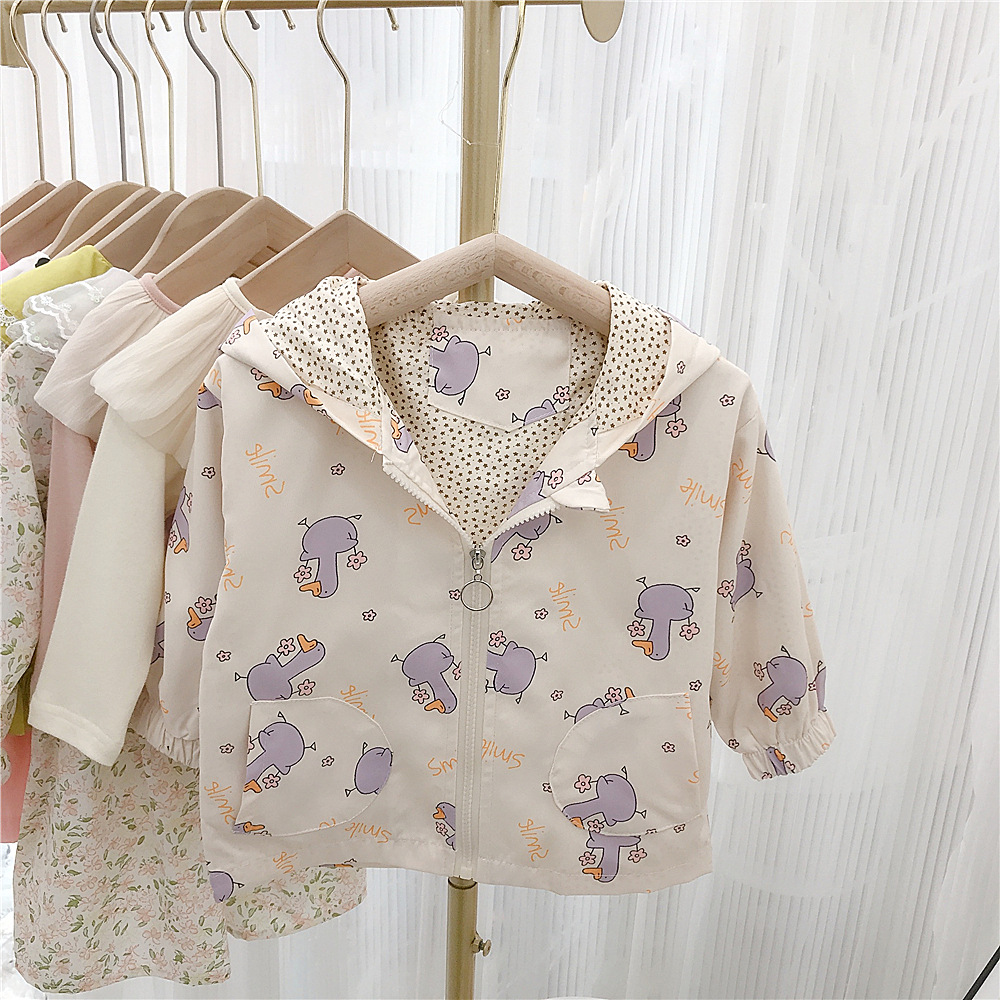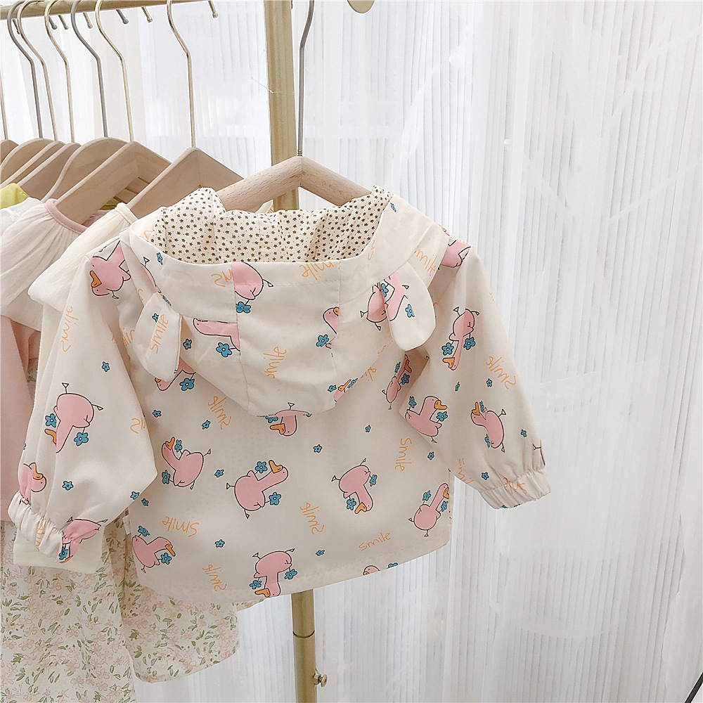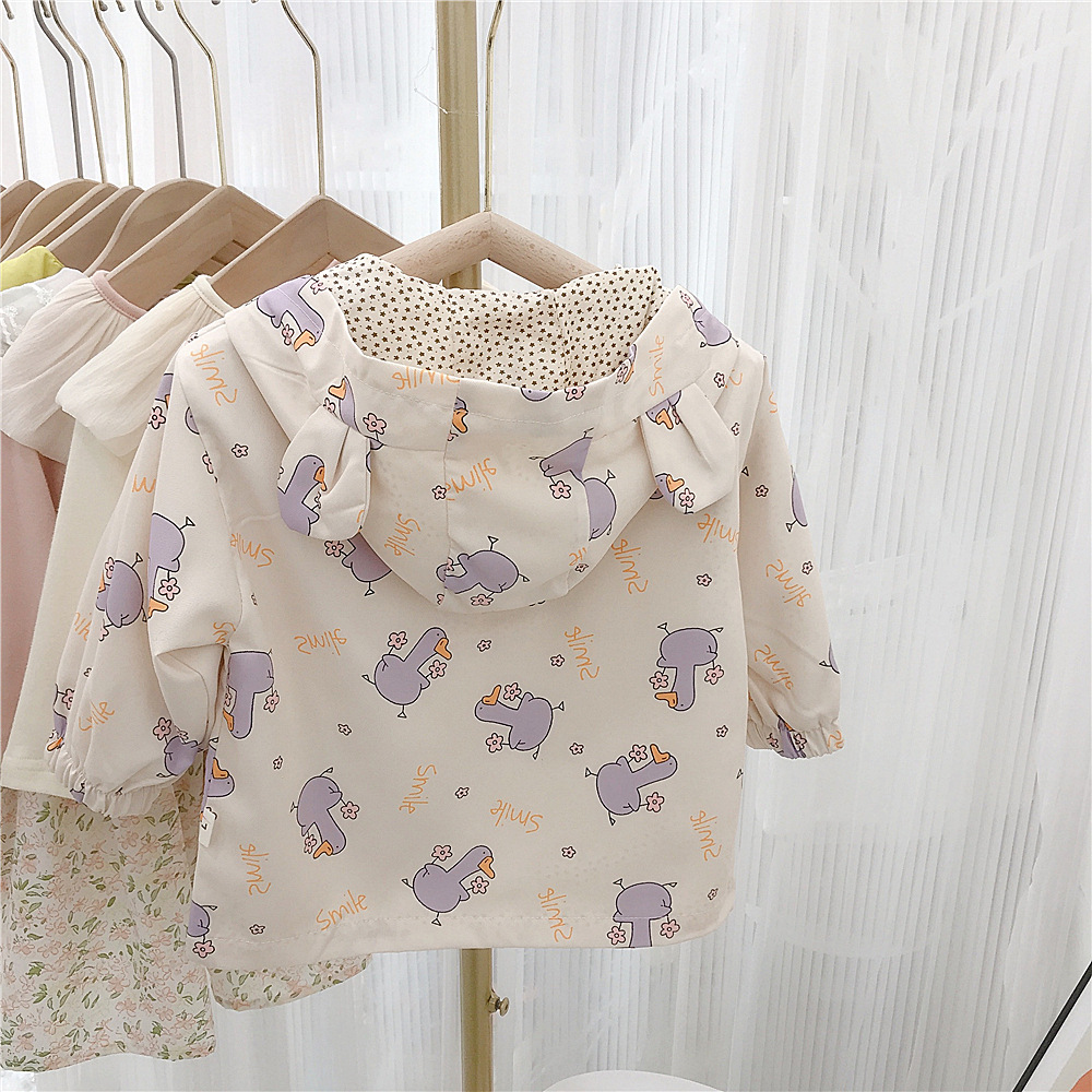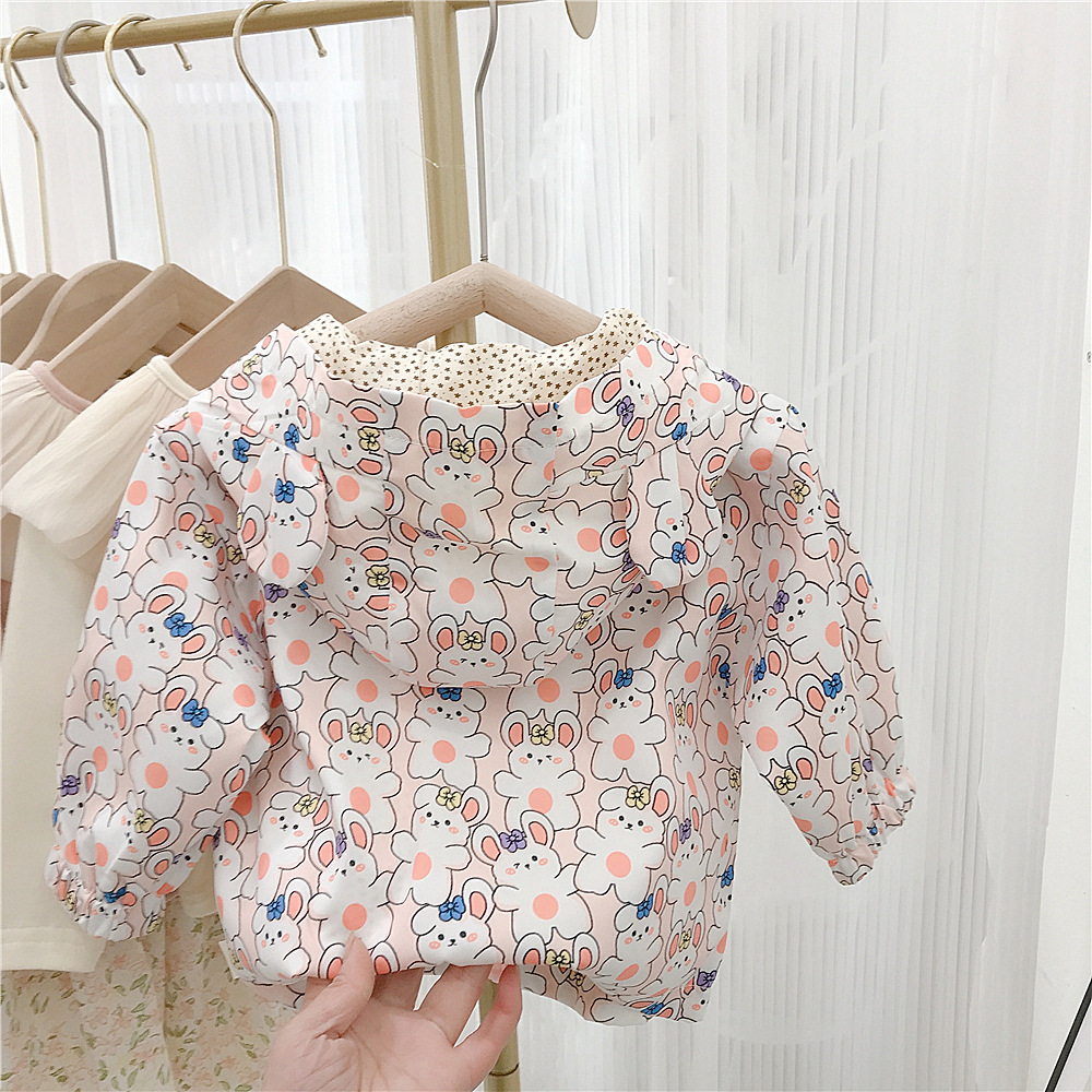여아 자켓 봄 2023 새로운 어린이 서양식 한국 스타일 봄과 가을 만화 후드 해외 무역을위한 유행 재킷스토어 가기