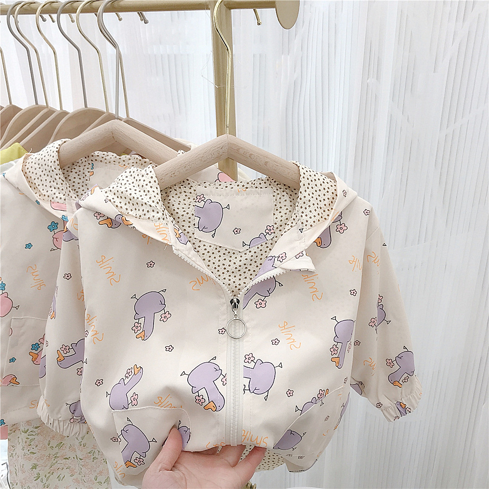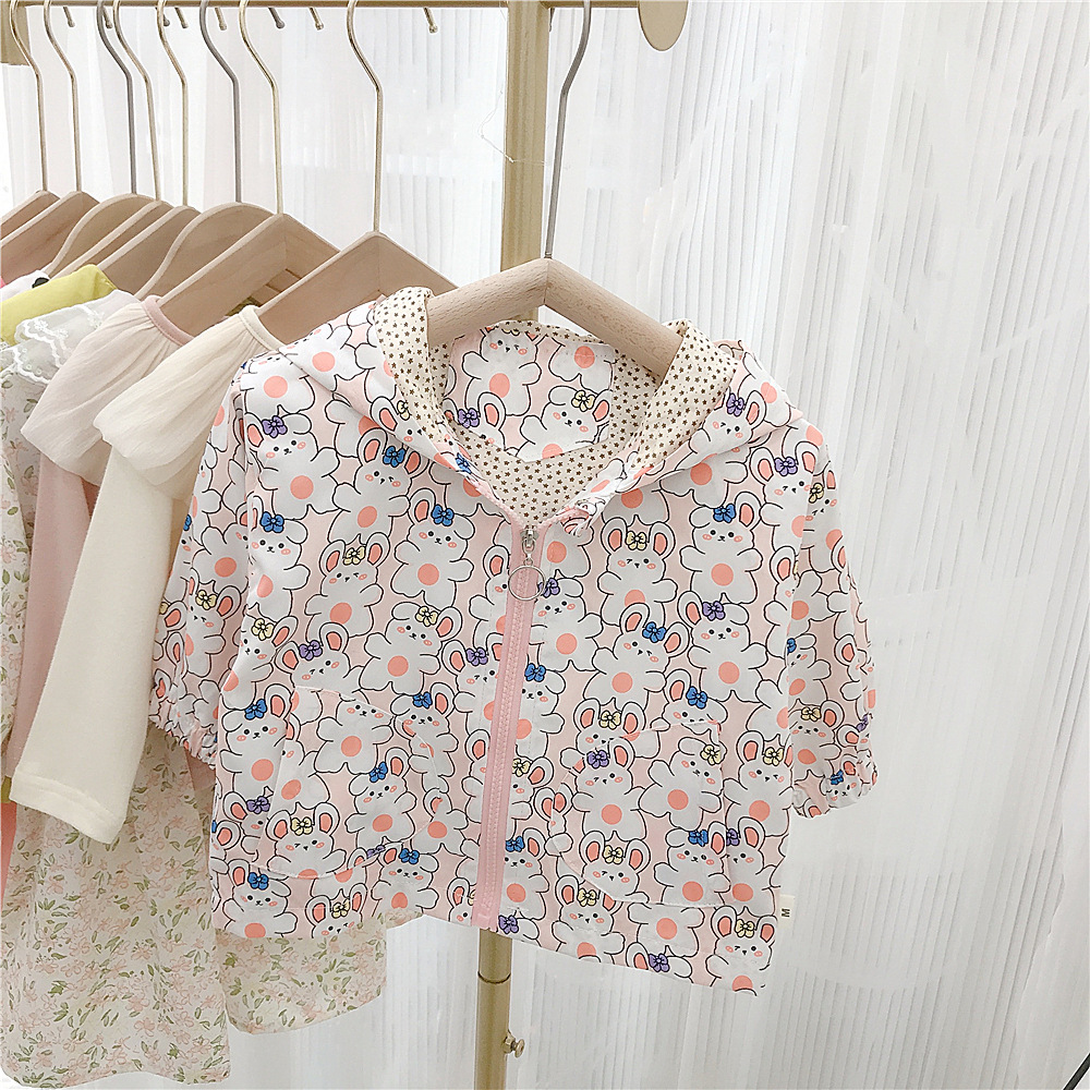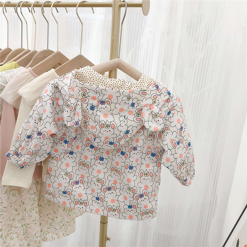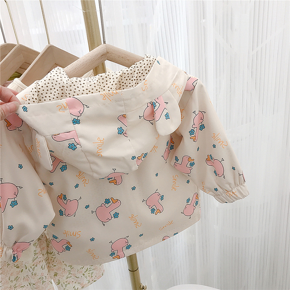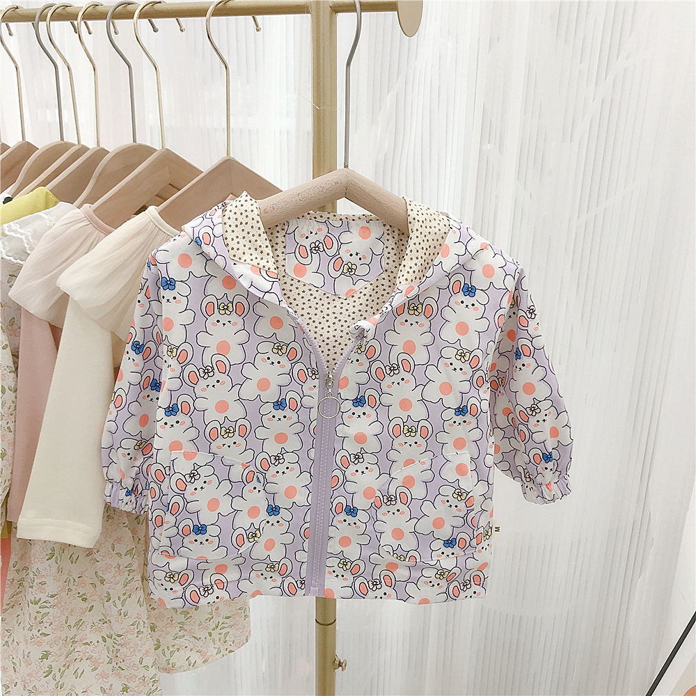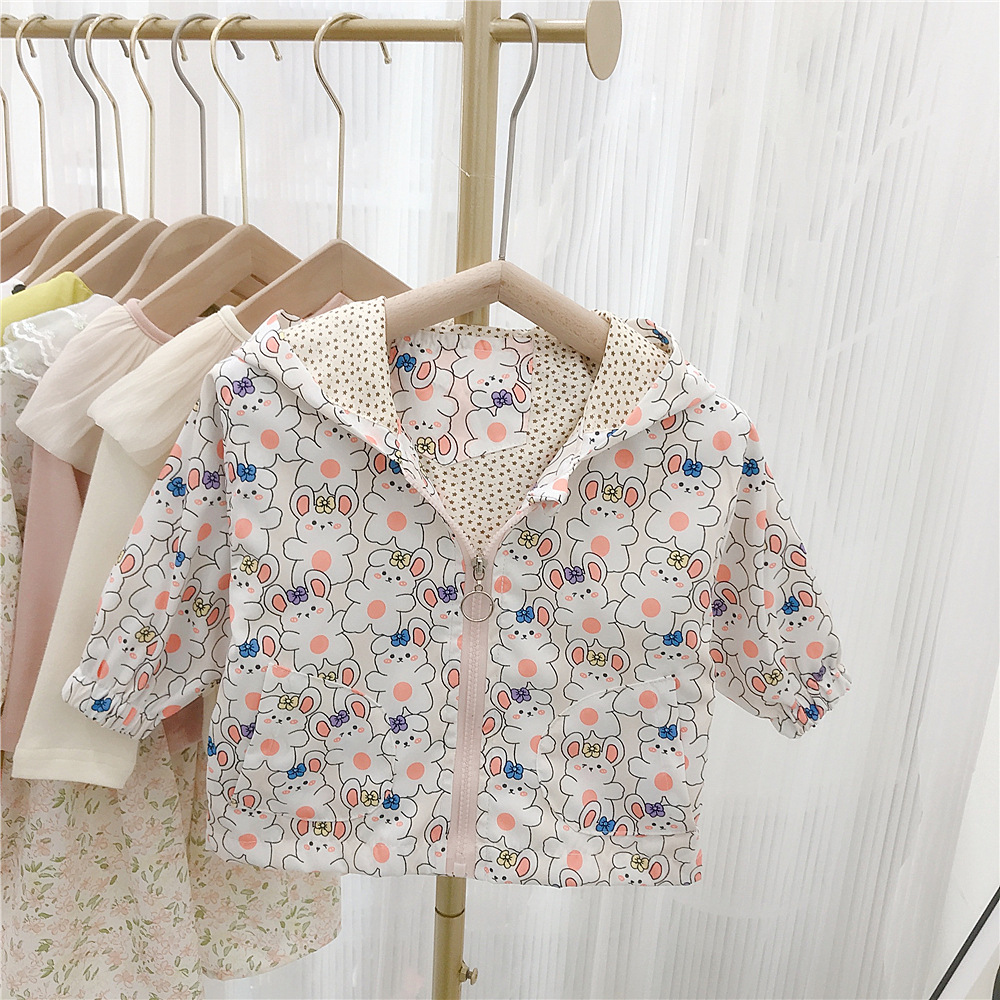 여아 자켓 봄 2023 새로운 어린이 서양식 한국 스타일 봄과 가을 만화 후드 해외 무역을위한 유행 재킷스토어 가기