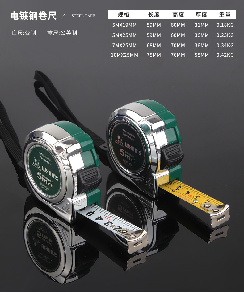 파워 라이온 고급 접착 코팅 강한 자기 미터법 스틸 테이프 메트릭 잠금 테이프 통치자 상자 3-10 m