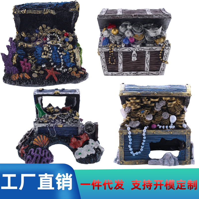 • 海底破洞宝藏箱鱼缸造景装饰摆件树脂鱼虾寄居蟹爬宠躲避洞穴