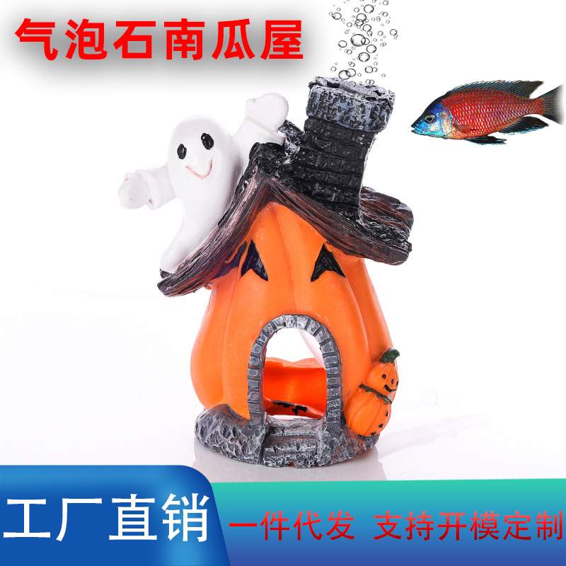 • 气泡石南瓜屋鱼缸造景装饰摆件 鱼缸充氧气万圣节南瓜房子装饰品