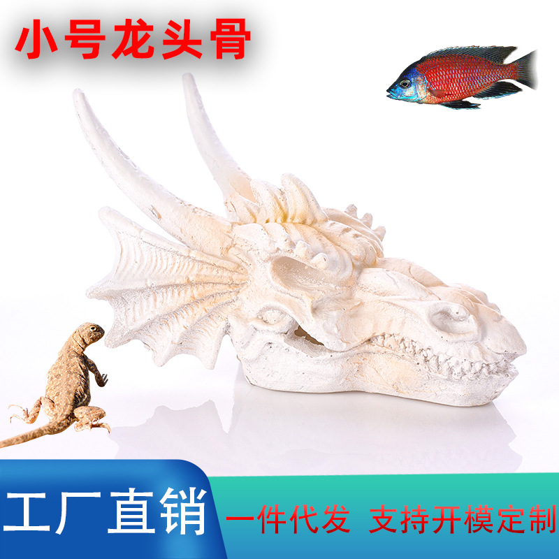 • 鱼缸造景装饰摆件小号龙头骨 仿真树脂恐龙骨头化石爬宠箱造景