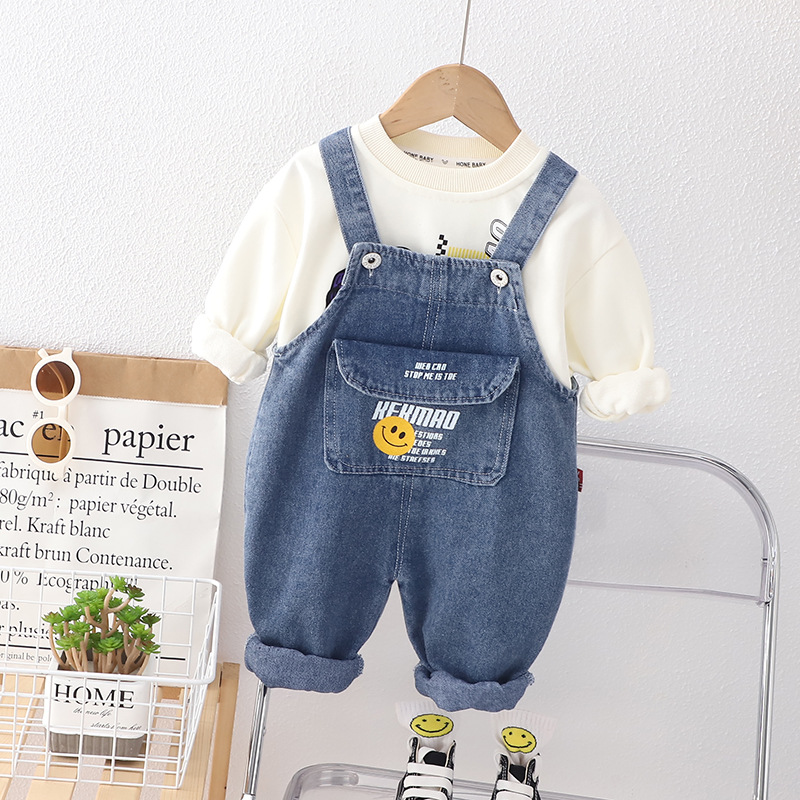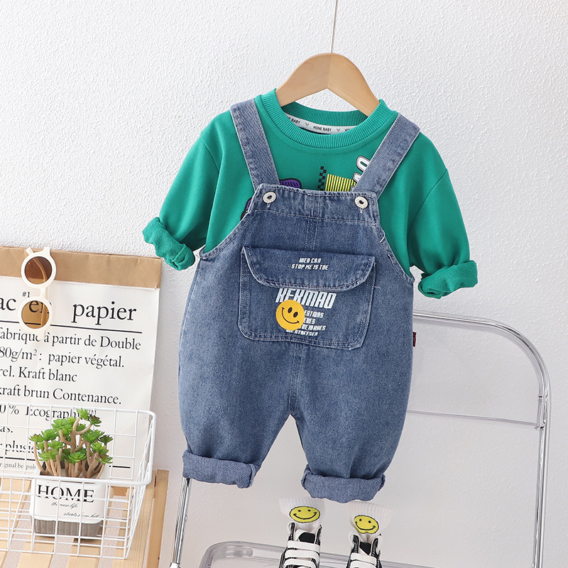 아동 의류 봄 세트 소년 데님 멜빵 봄과 가을 소녀 긴 소매 옷 아기 투피스 도매 조수스토어 가기