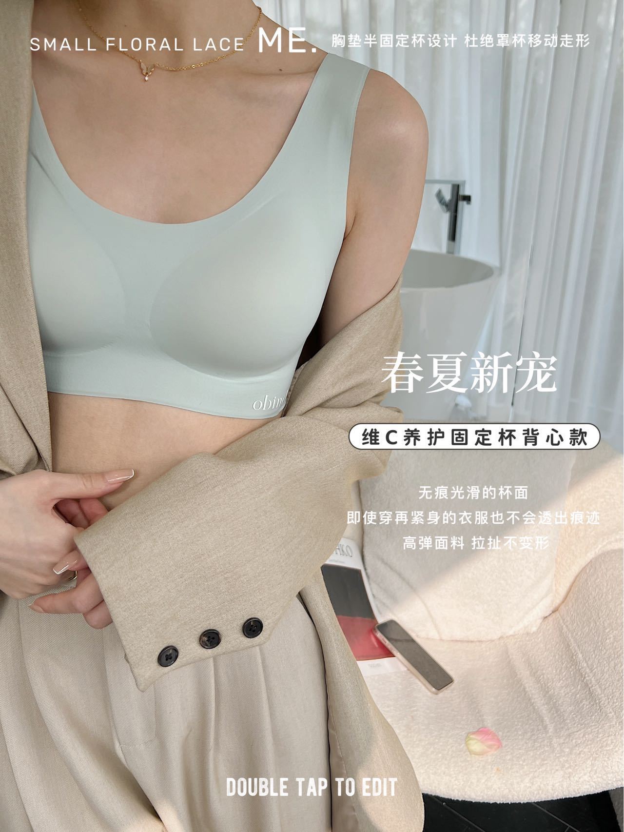 봄과 여름 새로운 경량 통기성 원피스 고정 컵 속옷 조끼 비타민 C 유지 보수 여성을위한 원활한 라텍스 브라스토어 가기