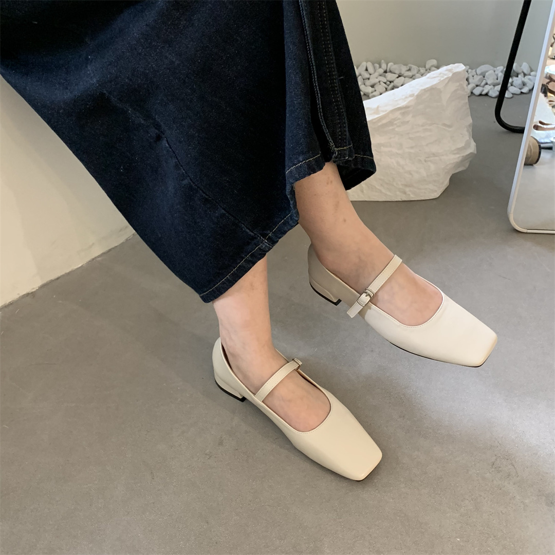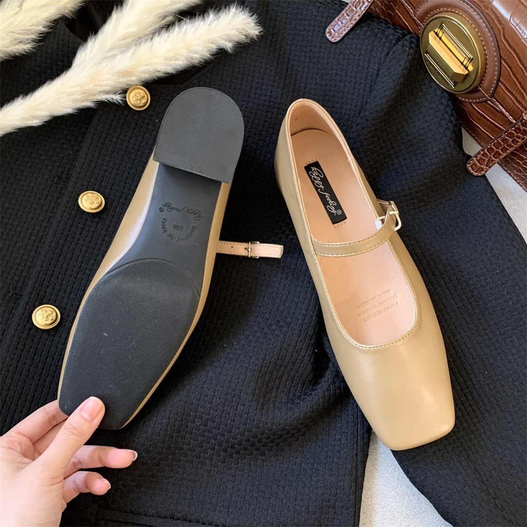 빅 미스 다이어리 ~ 프렌치 틈새 스퀘어 헤드 실버 작은 가죽 신발 봄 낮은 굽 두꺼운 굽 얕은 입 메리 제인 싱글 슈즈 여성스토어 가기