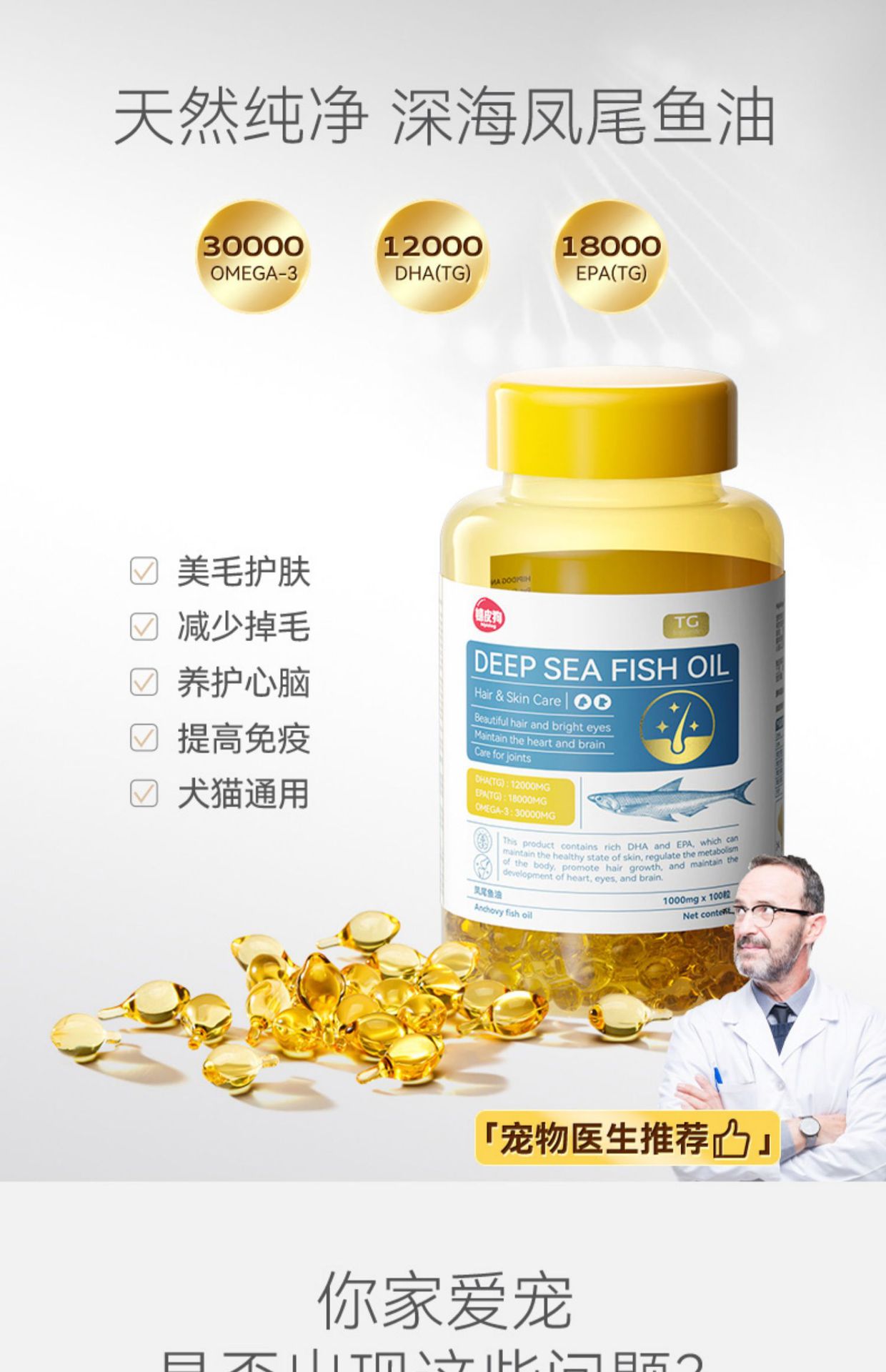 고양이와 개를위한 심해 생선 기름 개를위한 특수 모발 폭발성 모발 방지 레시틴 생선 기름 애완 동물 제품스토어 가기