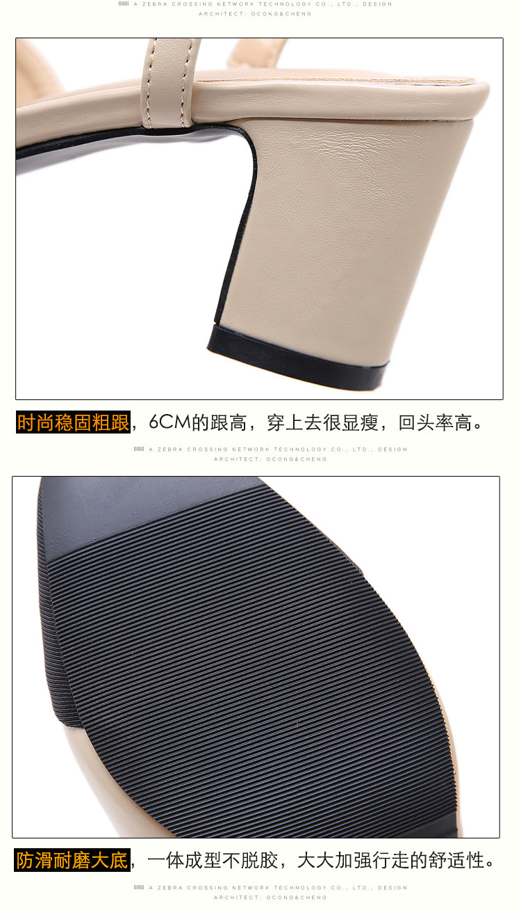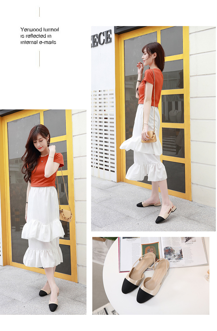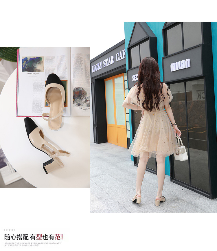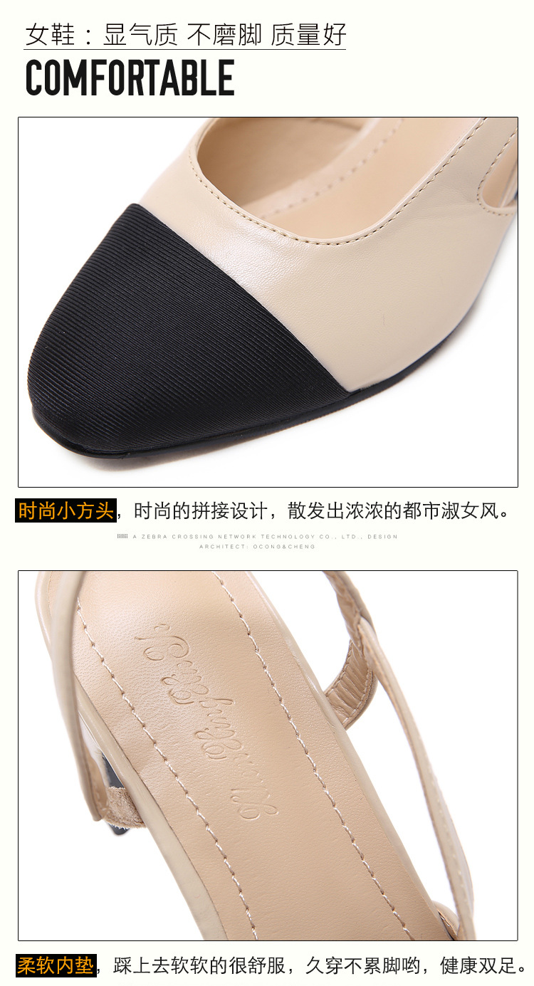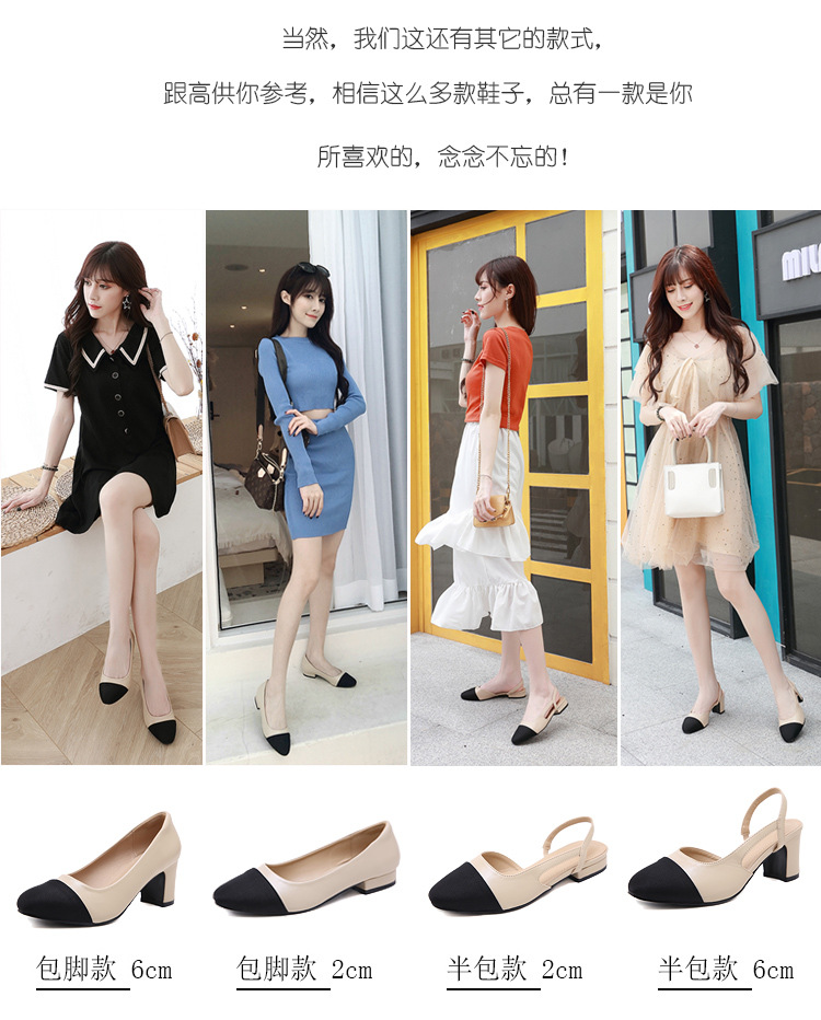 스폿 크로스 보더 소프트 가죽 플랫 컬러 매칭 소프트 가죽 작은 향기로운 샌들 바오터우 두꺼운 싱글 레이어 신발 여성용 미들 힐 스몰 사이즈 하이힐