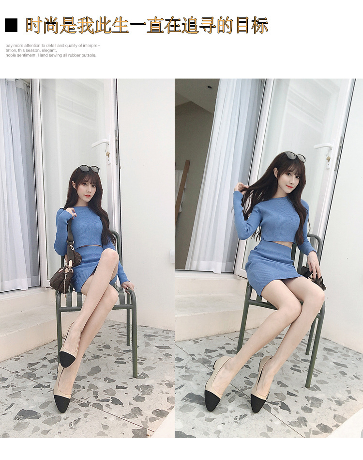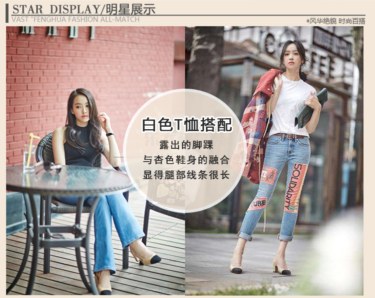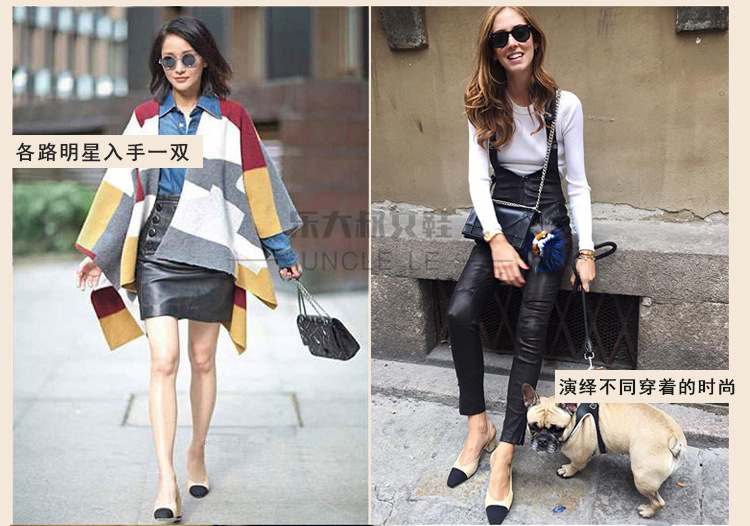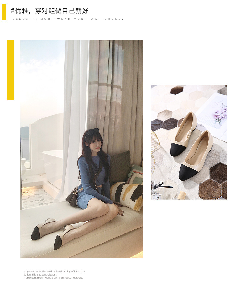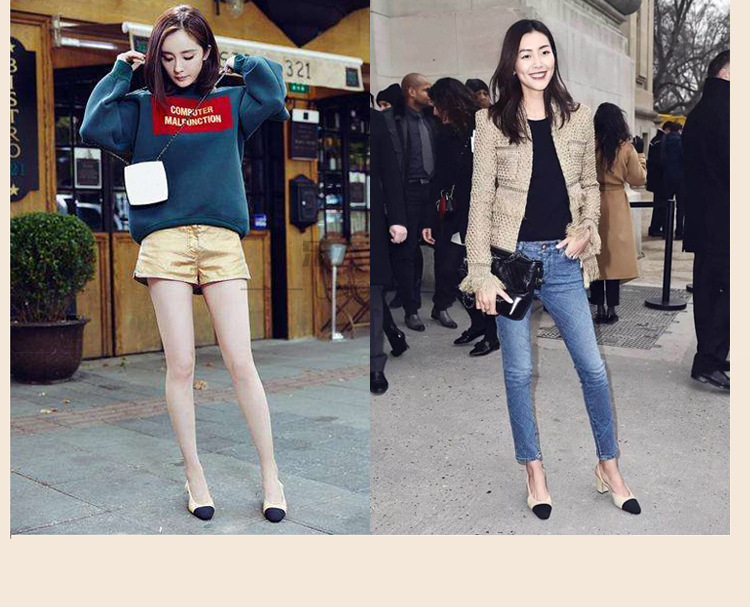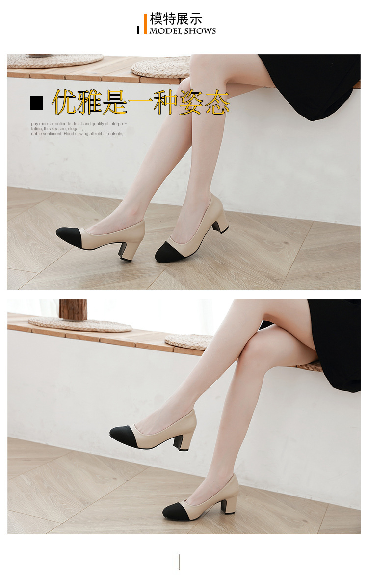스폿 크로스 보더 소프트 가죽 플랫 컬러 매칭 소프트 가죽 작은 향기로운 샌들 바오터우 두꺼운 싱글 레이어 신발 여성용 미들 힐 스몰 사이즈 하이힐