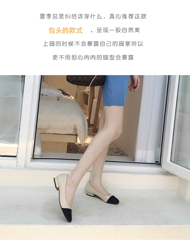 스폿 크로스 보더 소프트 가죽 플랫 컬러 매칭 소프트 가죽 작은 향기로운 샌들 바오터우 두꺼운 싱글 레이어 신발 여성용 미들 힐 스몰 사이즈 하이힐스토어 가기