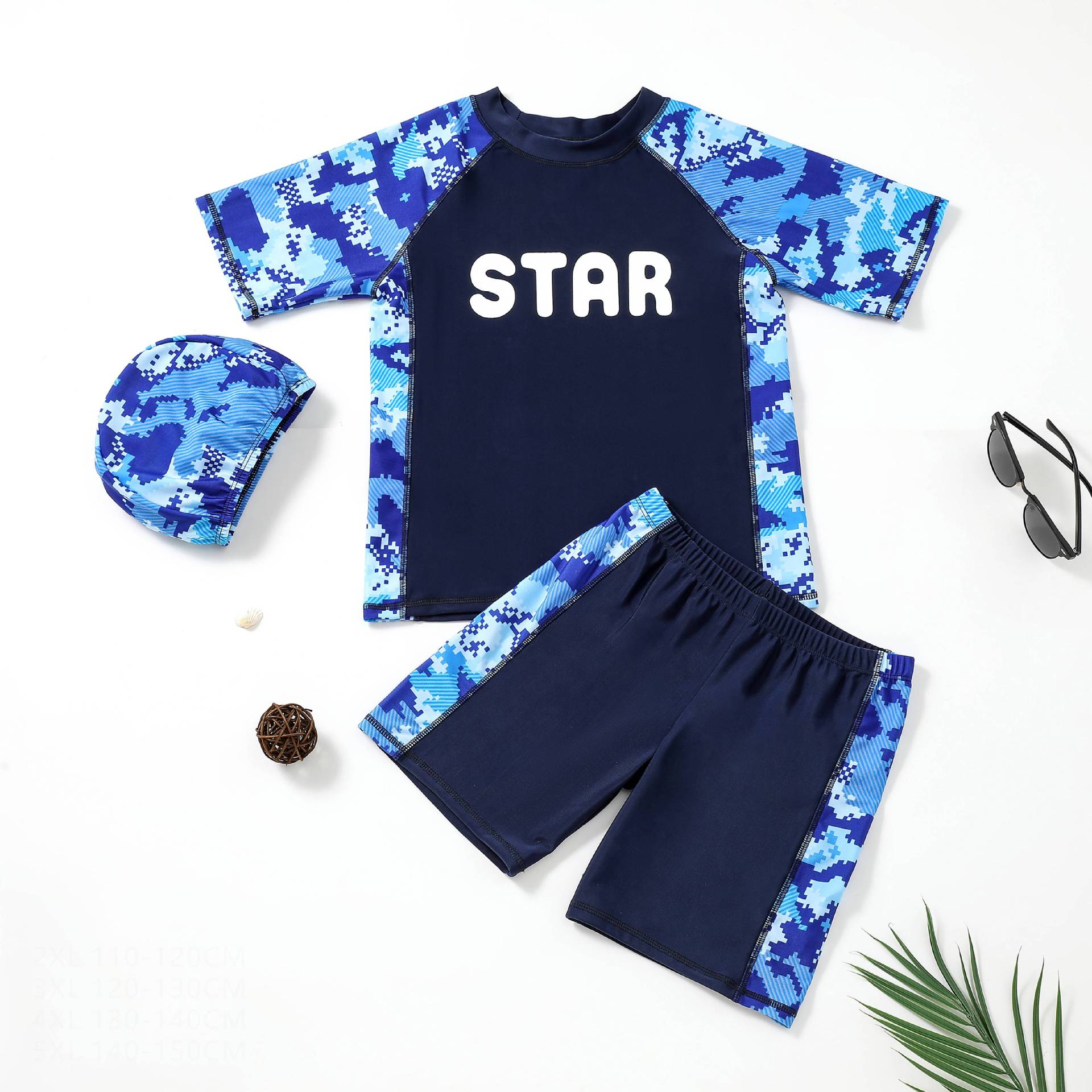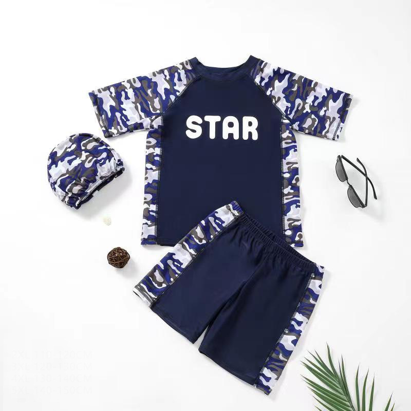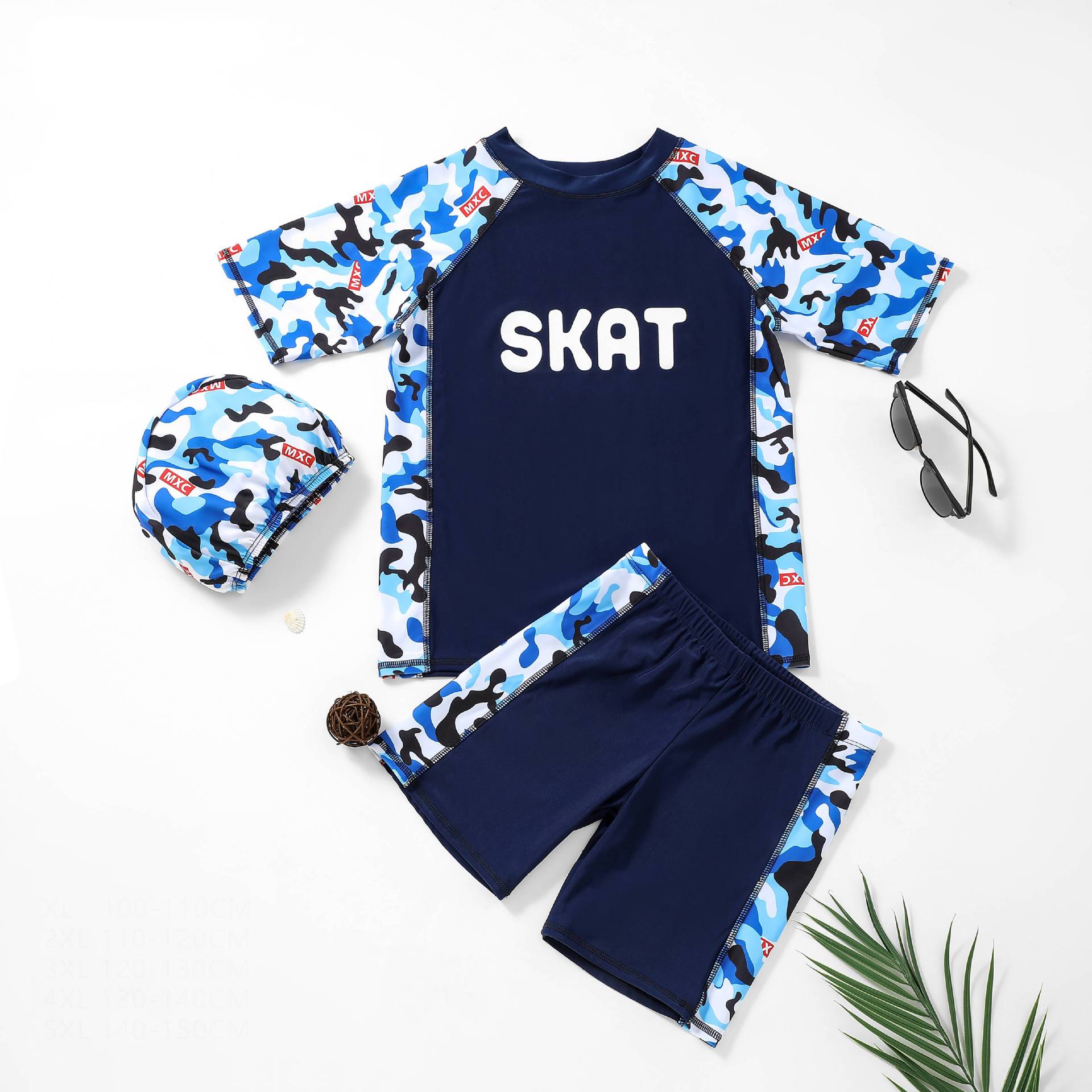 어린이 수영복 큰 소년의 분할 수영 트렁크 세트 소년의 플러스 사이즈 수영복 자외선 차단제 수영복 십대를위한스토어 가기