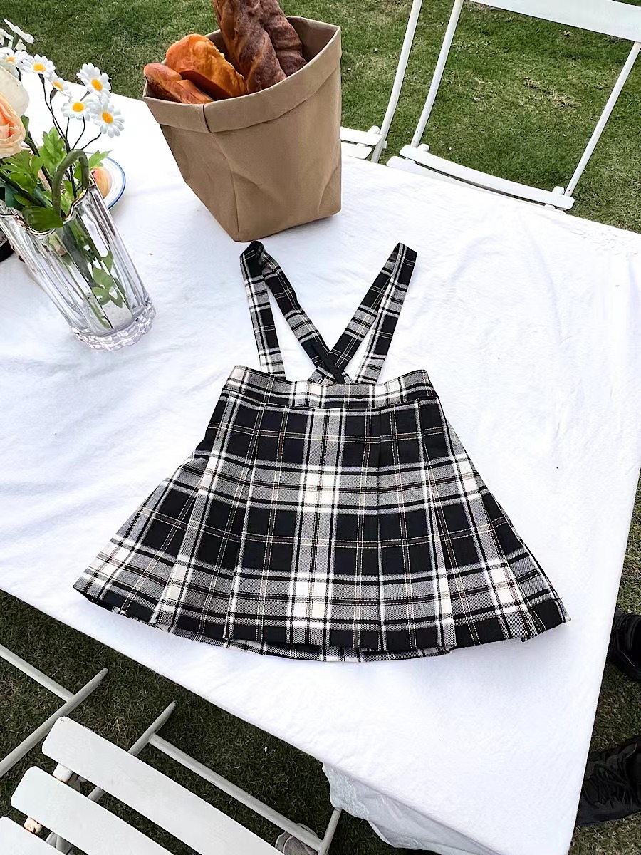 여자 23 봄 신상품 스트랩 스커트 골든 클래식 격자 무늬 대학 스타일 플리츠 스커트 캐시미어 니트웨어 세트스토어 가기