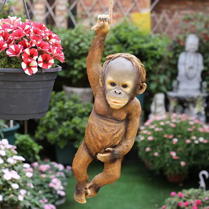 야외 정원 안뜰 나무 펜던트 원예 풍경 시뮬레이션 동물 수지 원숭이 창조적 인 장식 장식품