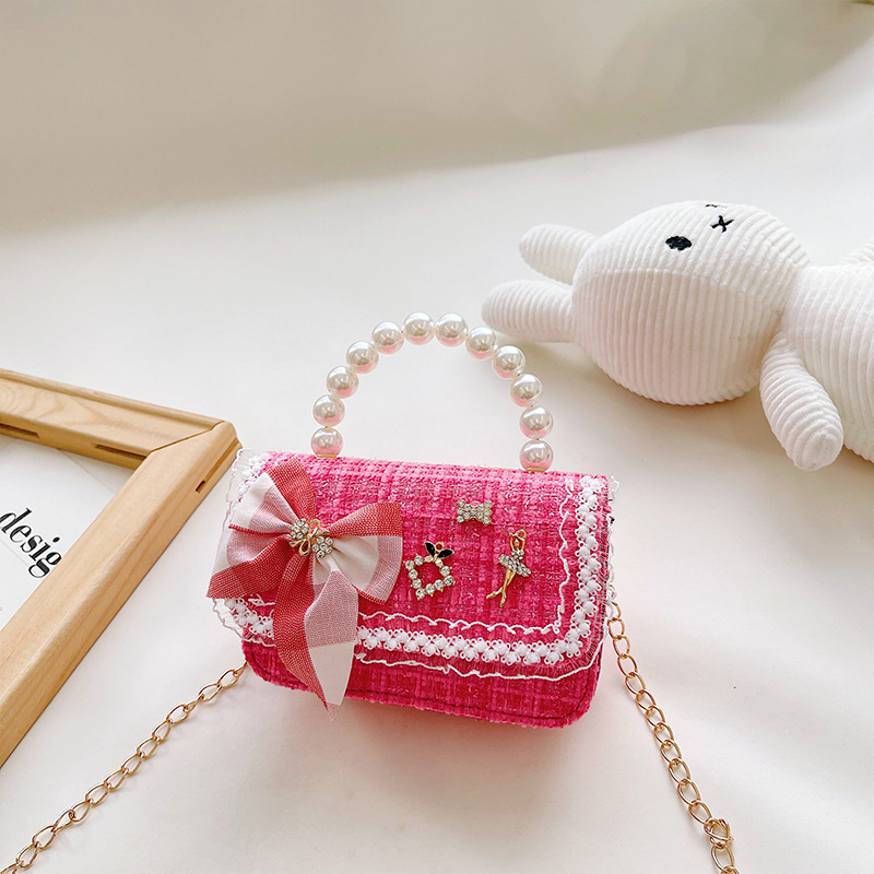 2025 새로운 패션 어린이 가방, 세련된 어린이 귀여운 동전 지갑 미니 다용도 공주 진주 핸드백