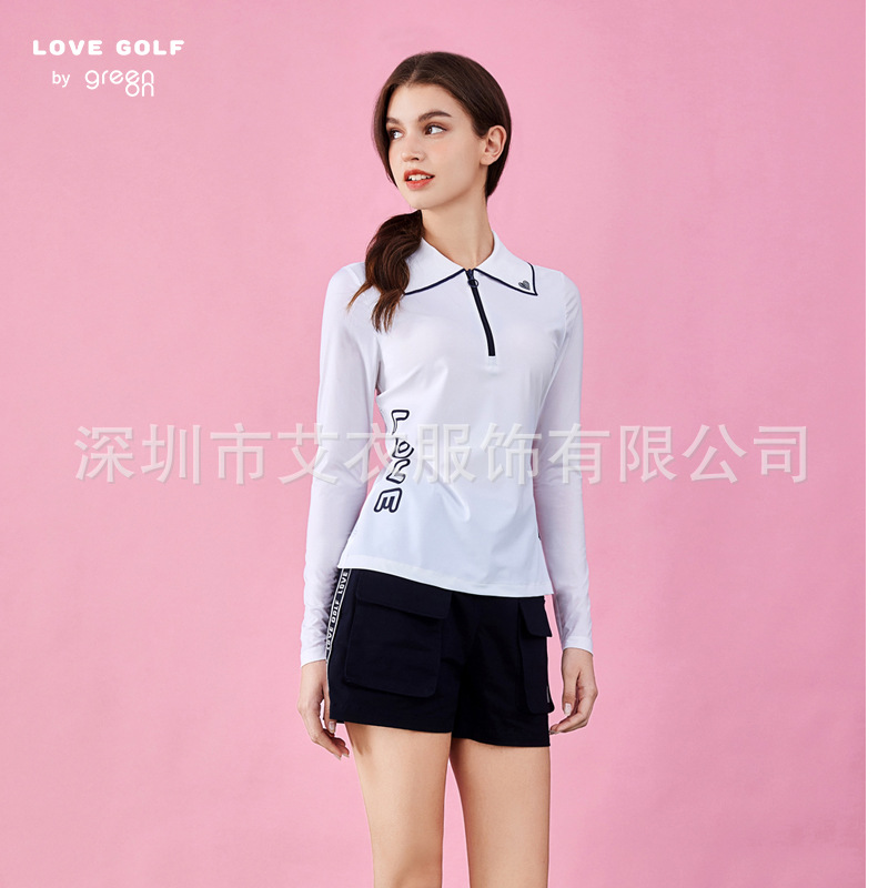 골프 여자의 긴 소매 티셔츠 얼음 실크 태양 보호 여름 새로운 골프 스포츠 공 옷 UV 보호 여자의 세트