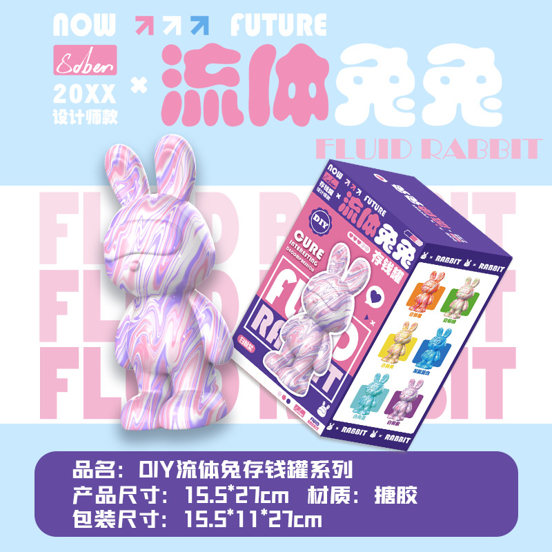 • 유체 토끼 돼지 저금통 (화이트 핑크 퍼플)