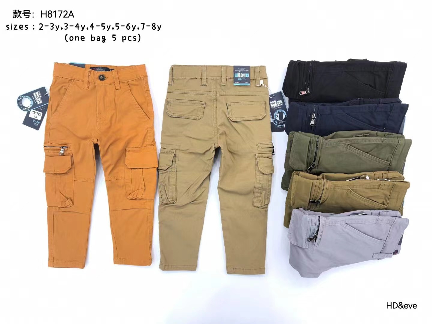다중 포켓 바지 캐주얼 신상품 수출용 남아 봄 가을 바지 중년 아동 2-8세 아동복 바지 색상 아동 바지 H8111