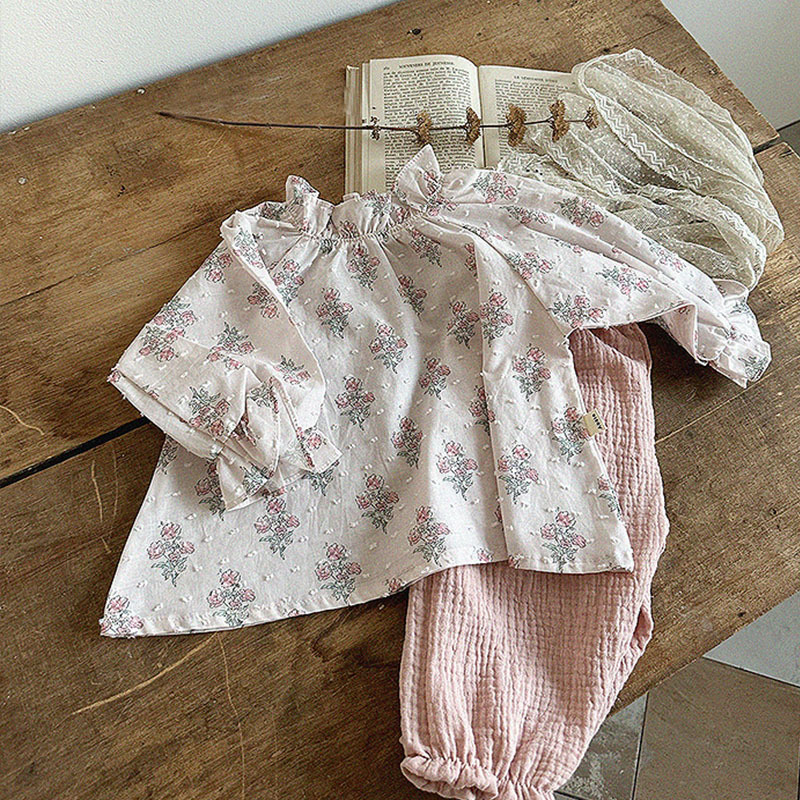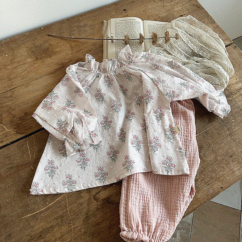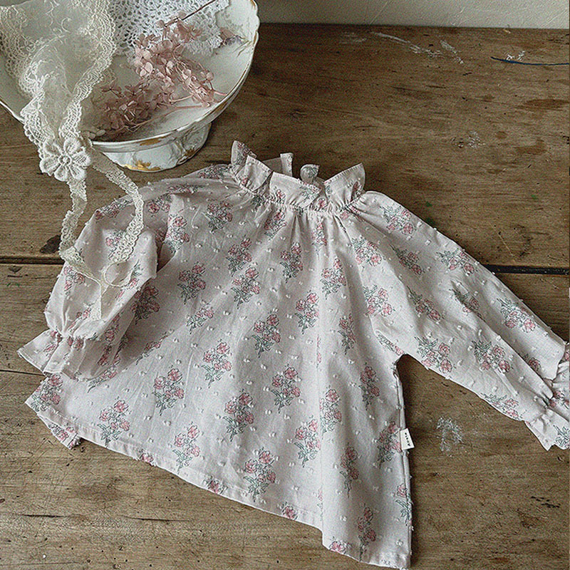 한국식 아동복 봄 착용 소녀의 꽃 칼라 패션 꽃 틈새 긴 소매 인형 셔츠 아기 어린이 패션 셔츠