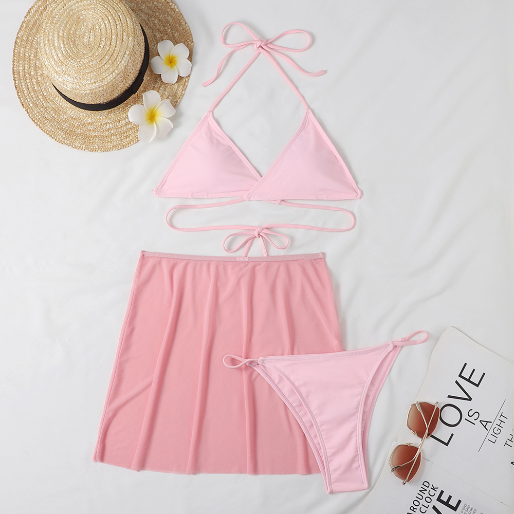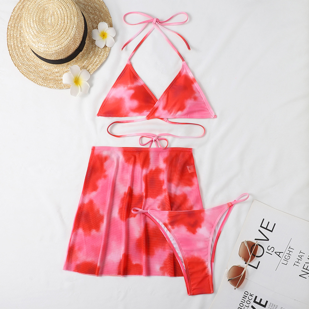 2023 유럽과 미국의 섹시한 3 점 끈 팬티가있는 거즈 스커트 멀티 컬러 스플릿 비키니 스트랩 AliExpress 수영복스토어 가기