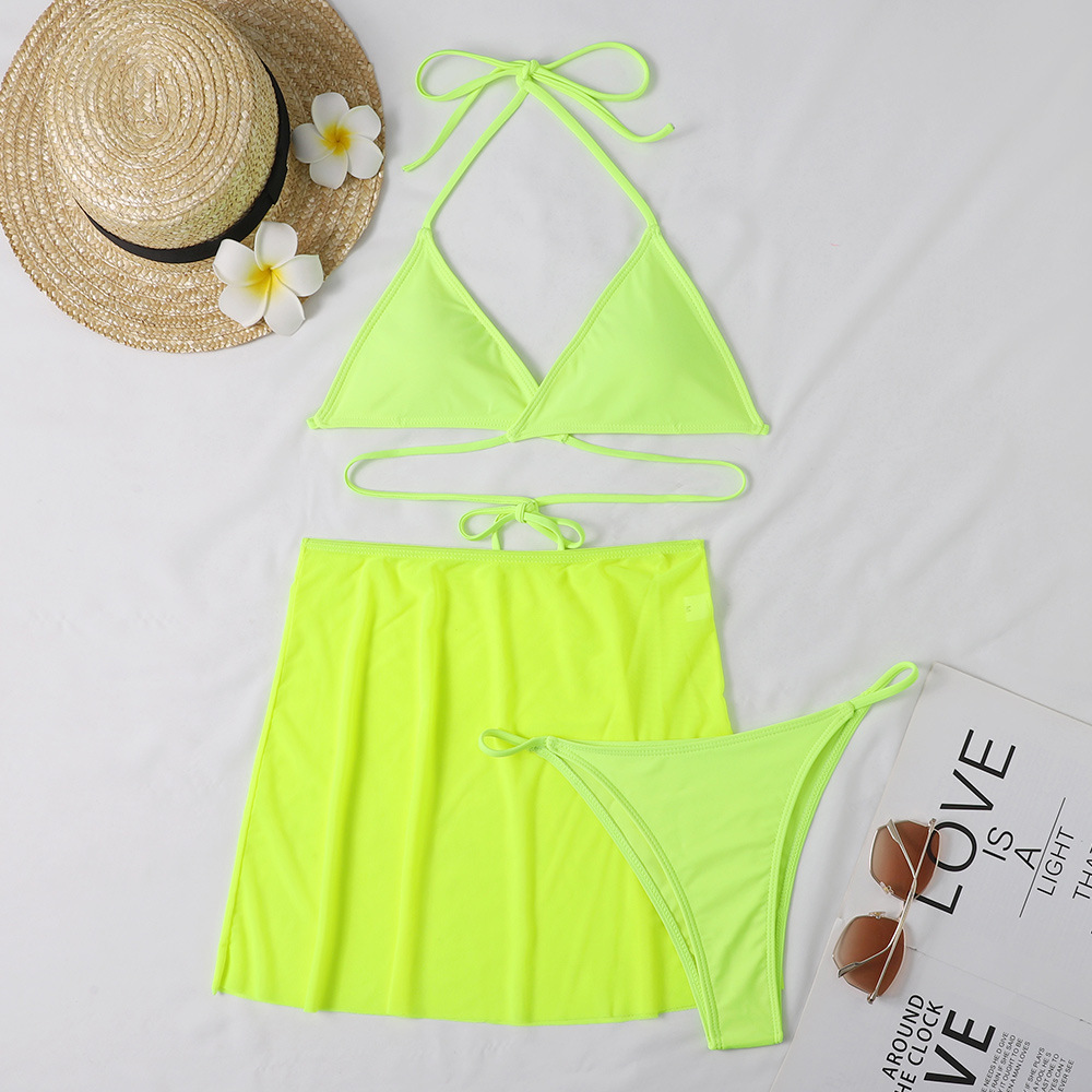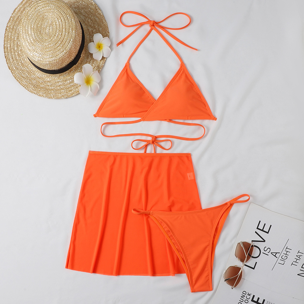 2023 유럽과 미국의 섹시한 3 점 끈 팬티가있는 거즈 스커트 멀티 컬러 스플릿 비키니 스트랩 AliExpress 수영복