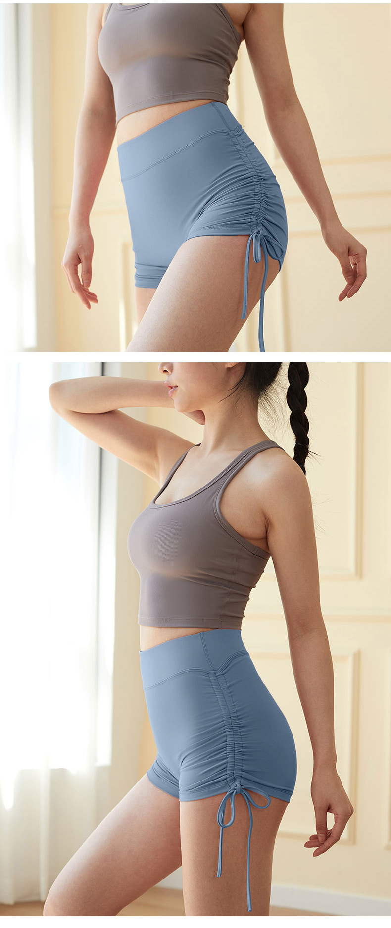 여름 러닝 피트니스 요가 팬츠 여성용 하이웨이스트 힙업 핫팬츠 신축성 있는 조임끈 요가 반바지 누드감 편안함