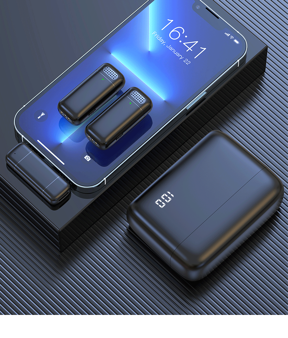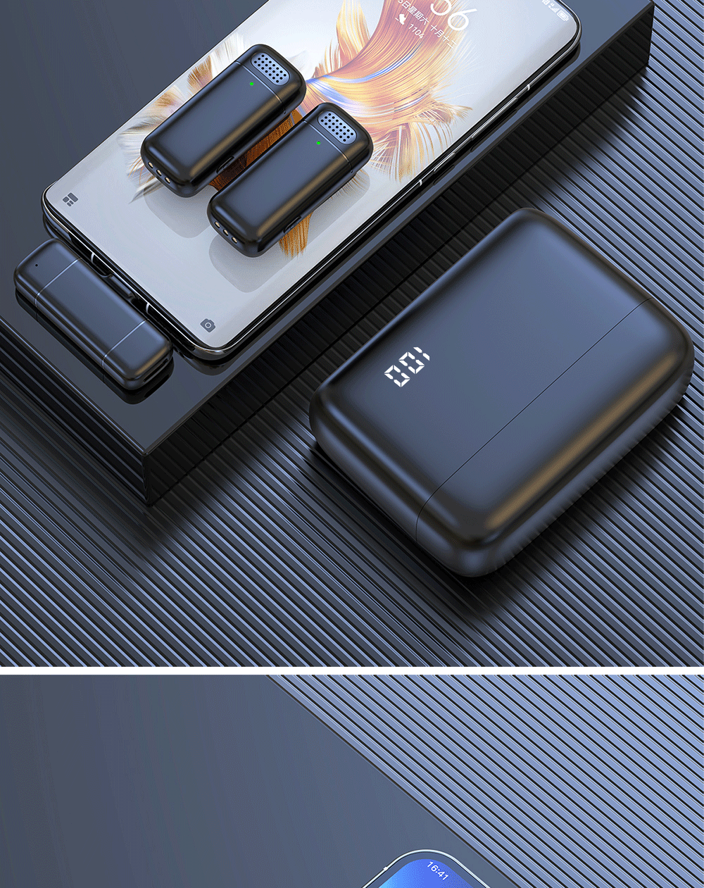 工厂2023新款专利无线直播麦克风,带充电仓,带数显,可调节降噪,带监听混响功能!