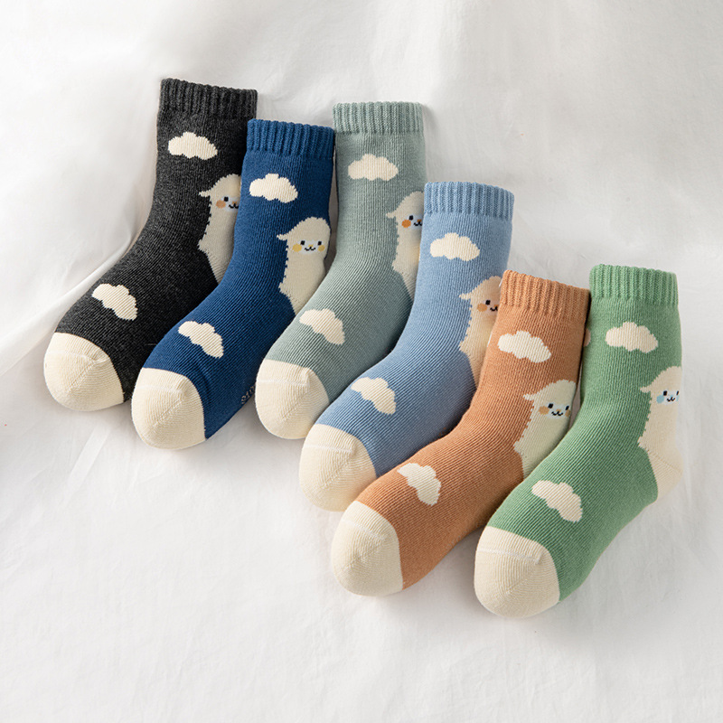 Tangram 어린이 양말 소년 가을과 겨울 두꺼운 면 소녀 다채로운 줄무늬 중형 및 대형 어린이 긴면 양말 12 쌍스토어 가기