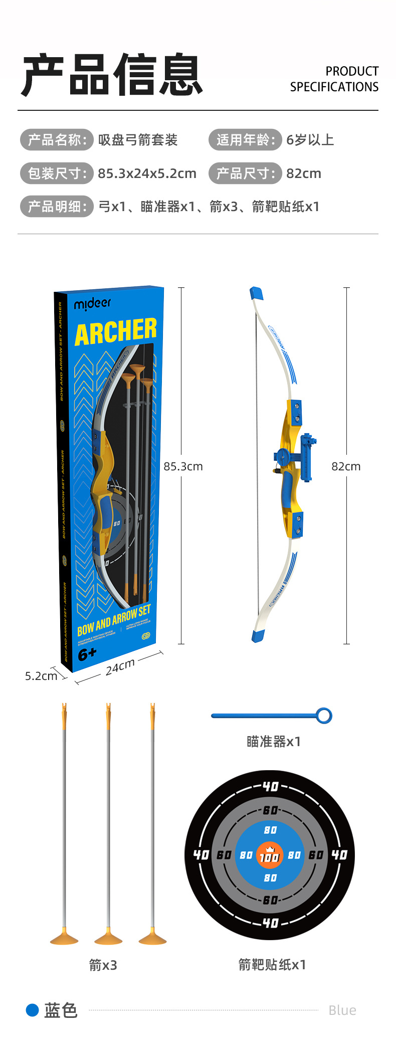 • 빨판 활 세트-에이스 궁수 (블루) MD6274
