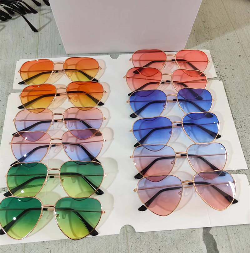 빈티지 메탈 하트 선글라스 남성과 여성 오션 시리즈 사랑 안경 한국 하트 모양 패션 선글라스 재고