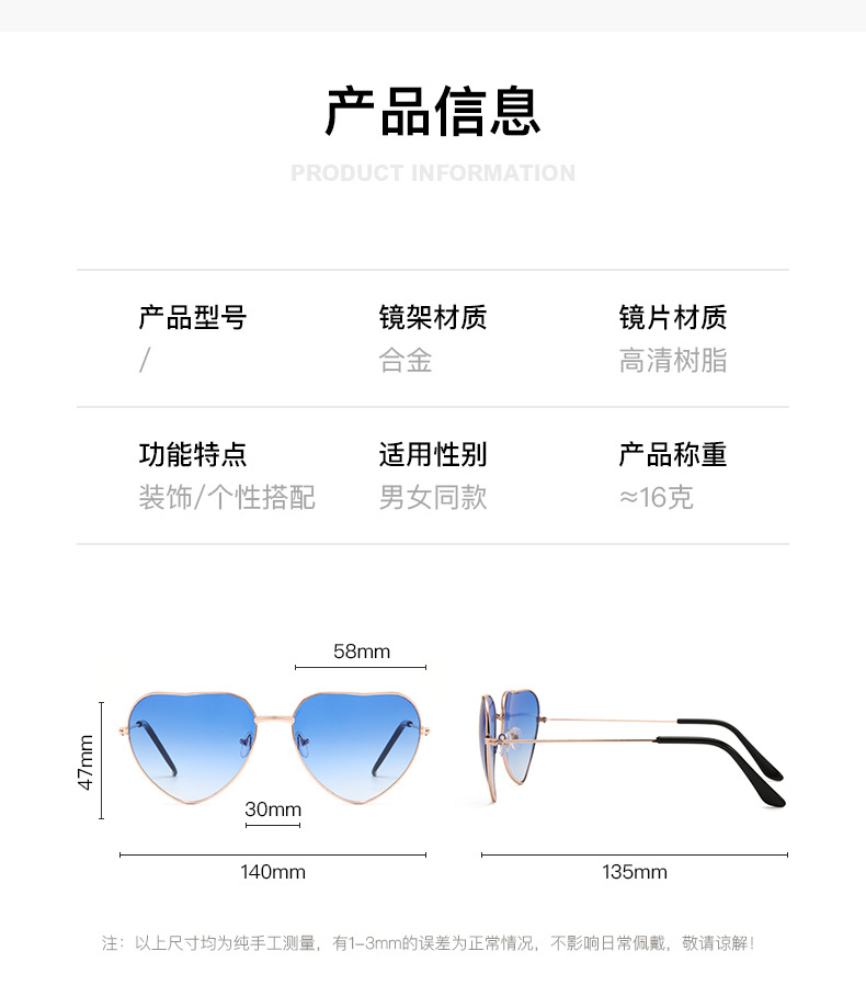 复古金属桃心太阳镜男女海洋片系列爱心眼镜韩版心形时尚墨镜现货