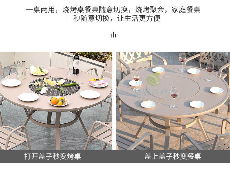 • 130CM 샴페인 컬러 바베큐 라운드 테이블