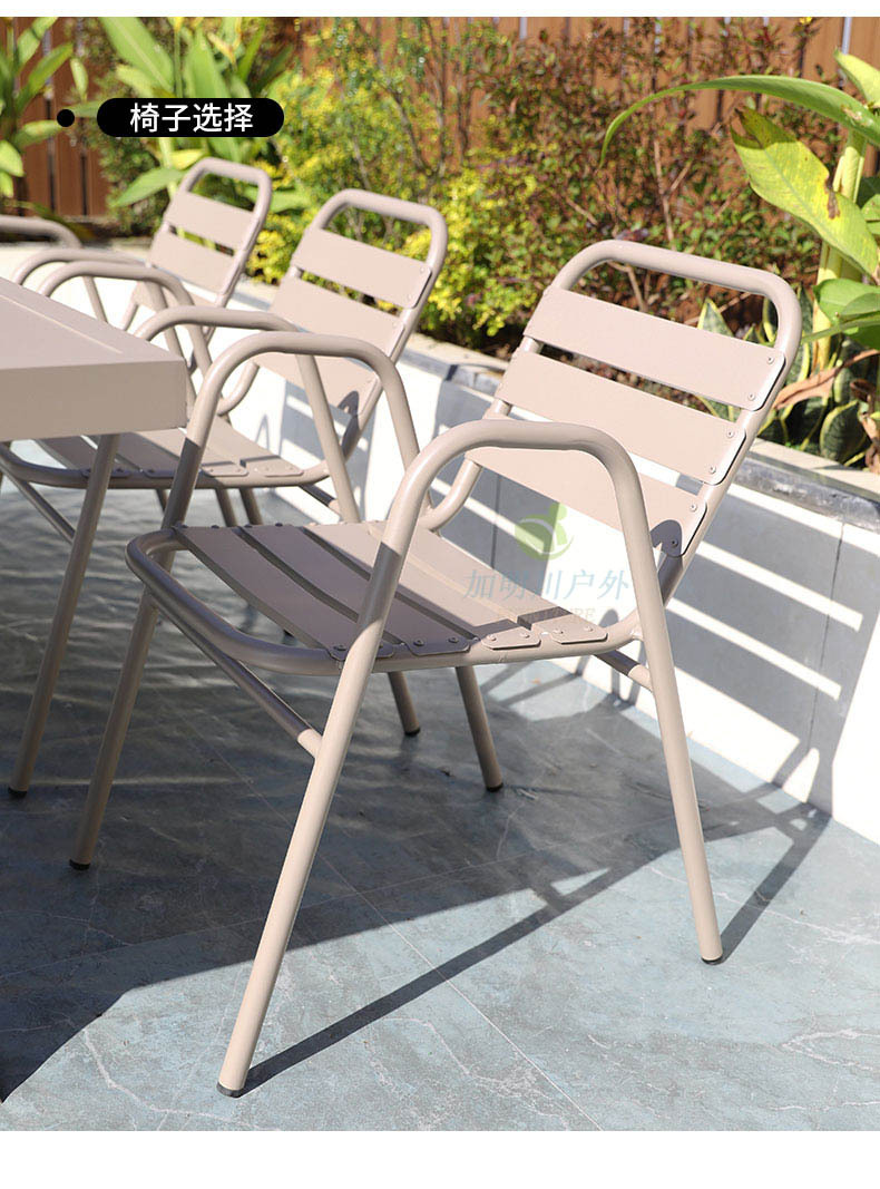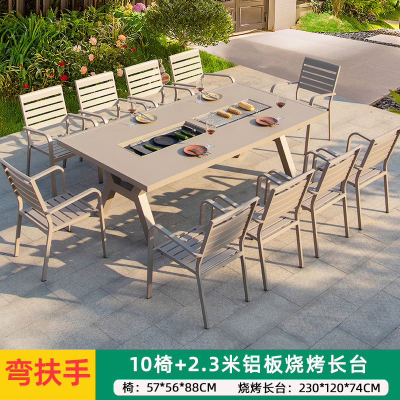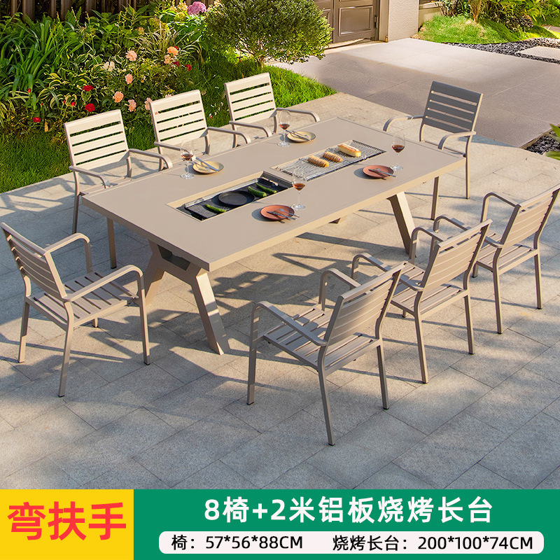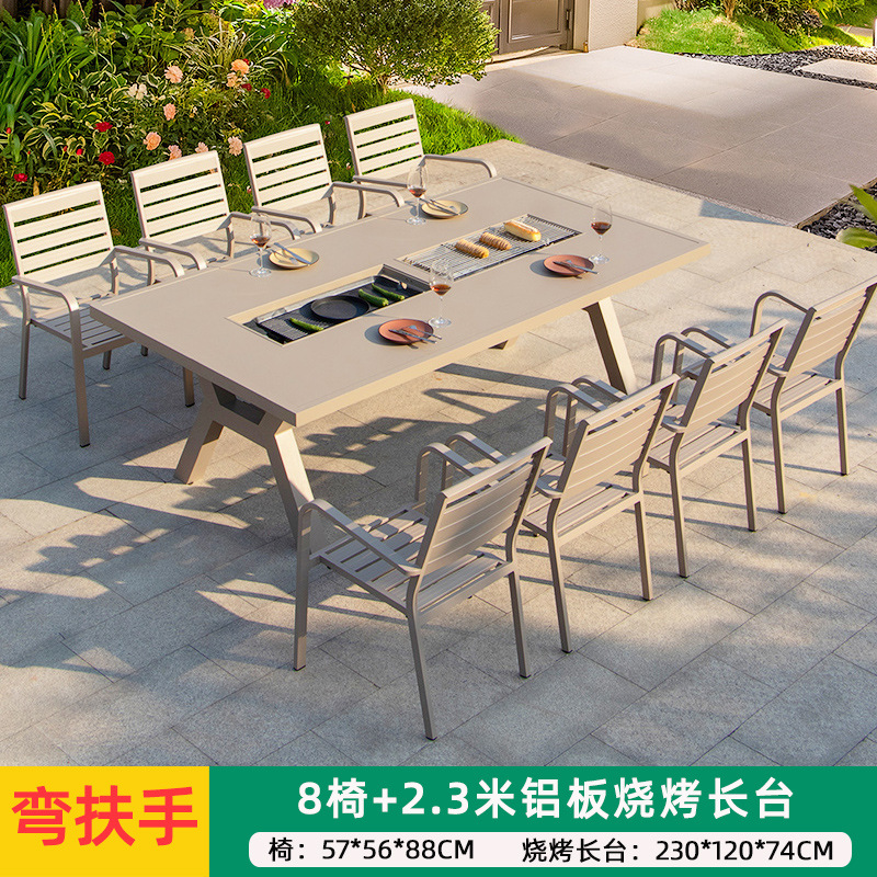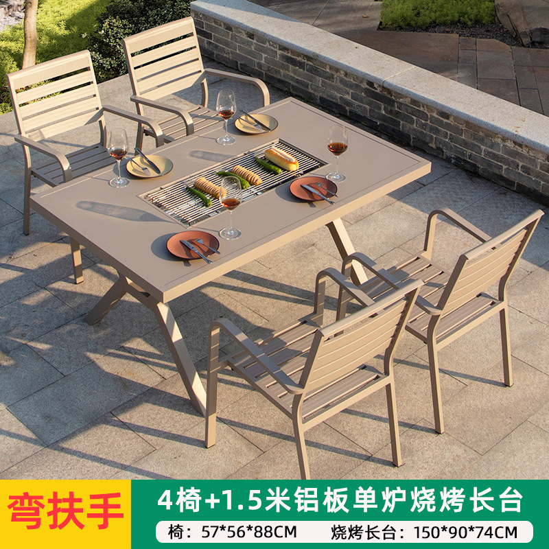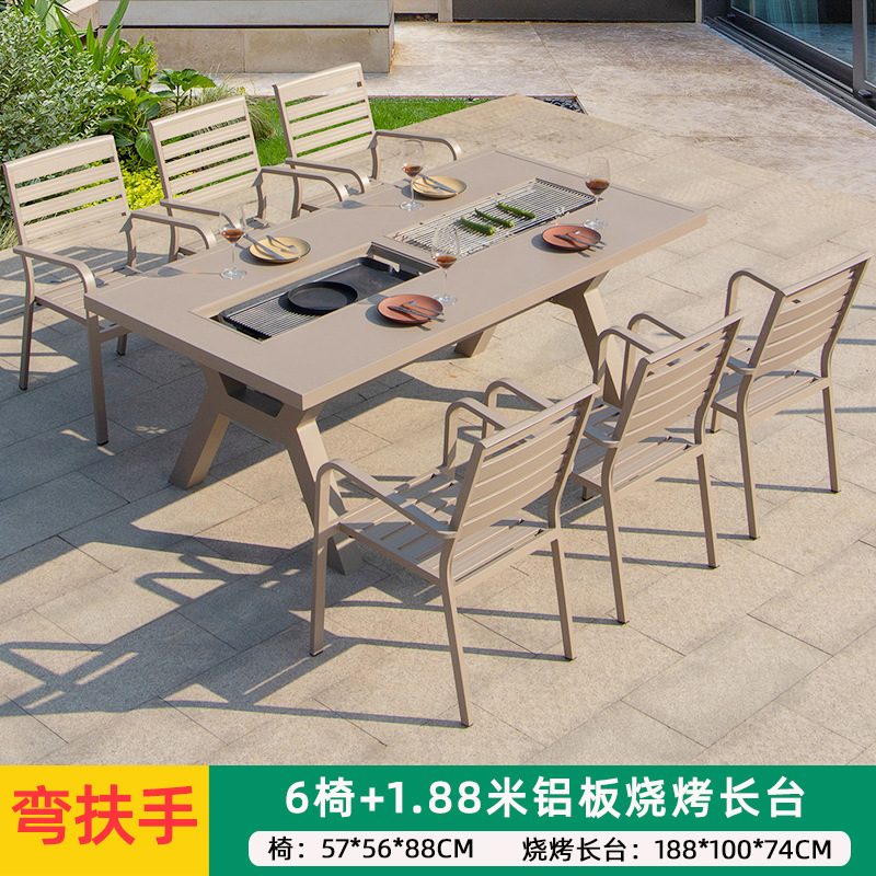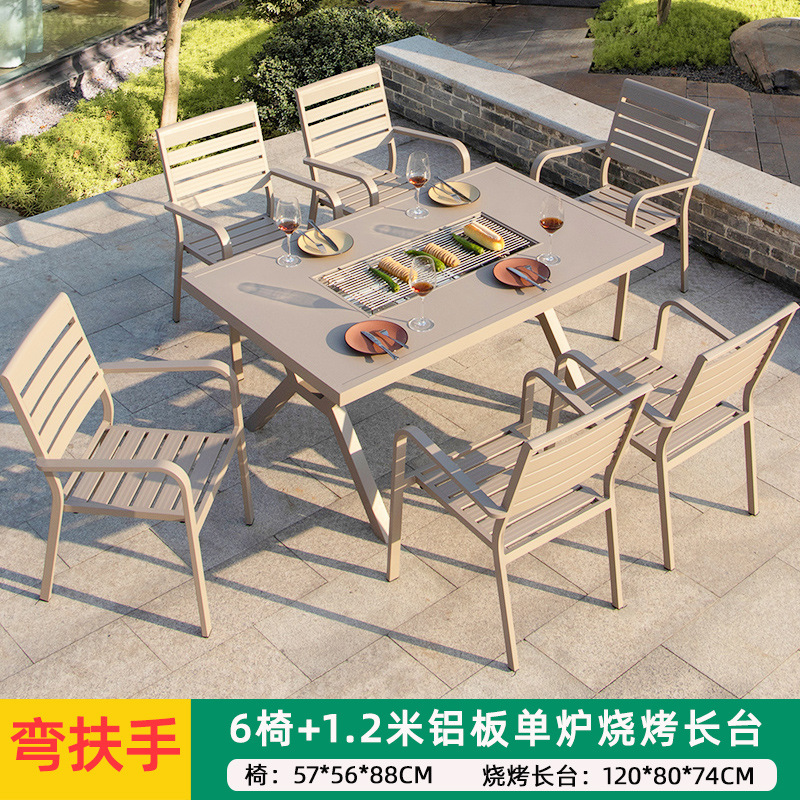 • 곡선형 팔걸이 의자 6개 + 알루미늄 판 단일 오븐 바베큐 긴 테이블 1.5m 개