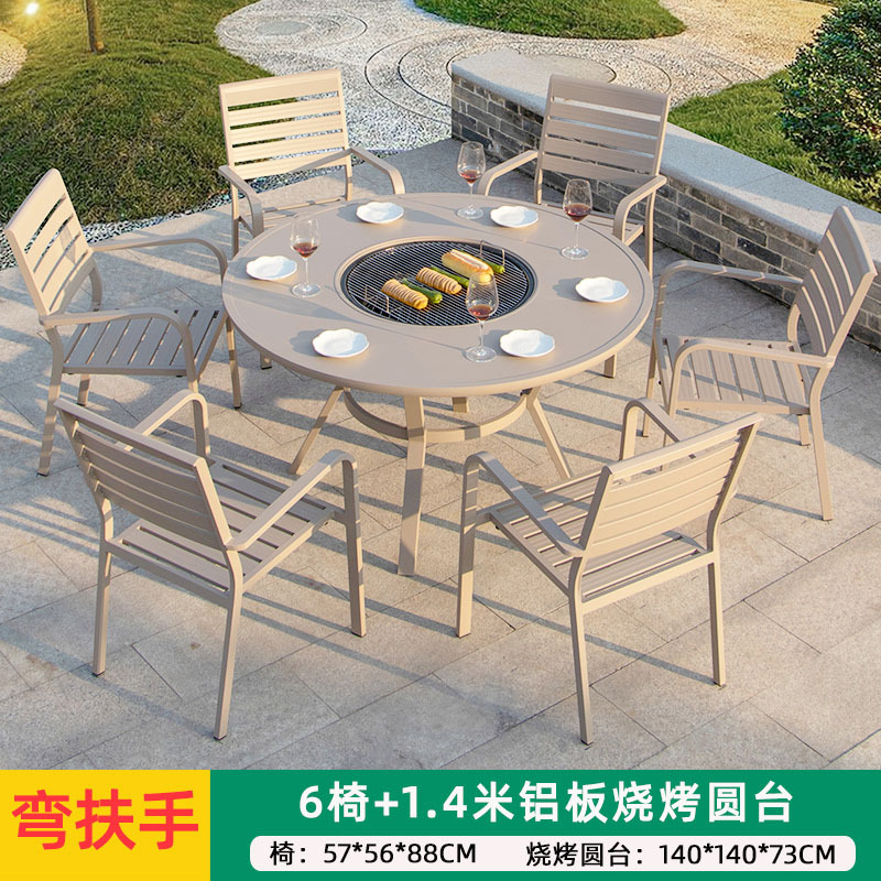 • 곡선형 팔걸이의자 6개 + 알루미늄판 바비큐 원형 테이블 1.4m 개