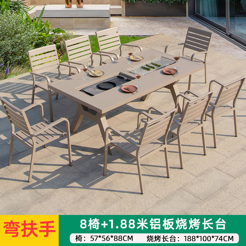 야외 정원 바베큐 테이블과 의자, 야외 빌라용 전기/숯불 그릴, 알루미늄 합금 야외 가정용 레저 식탁 세트