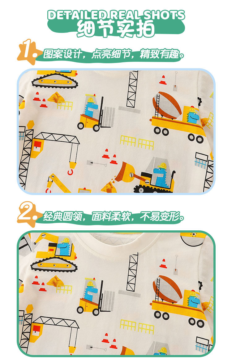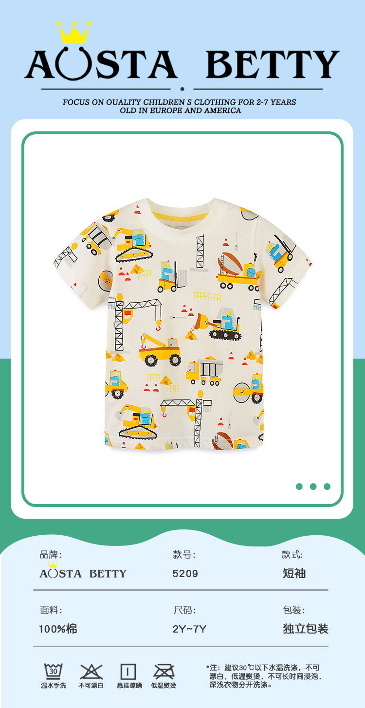 AostaBetty 크로스 보더 아동복 티셔츠 여름 중소 아동 만화 패션 티셔츠 니트 라운드 넥 남아 탑스토어 가기