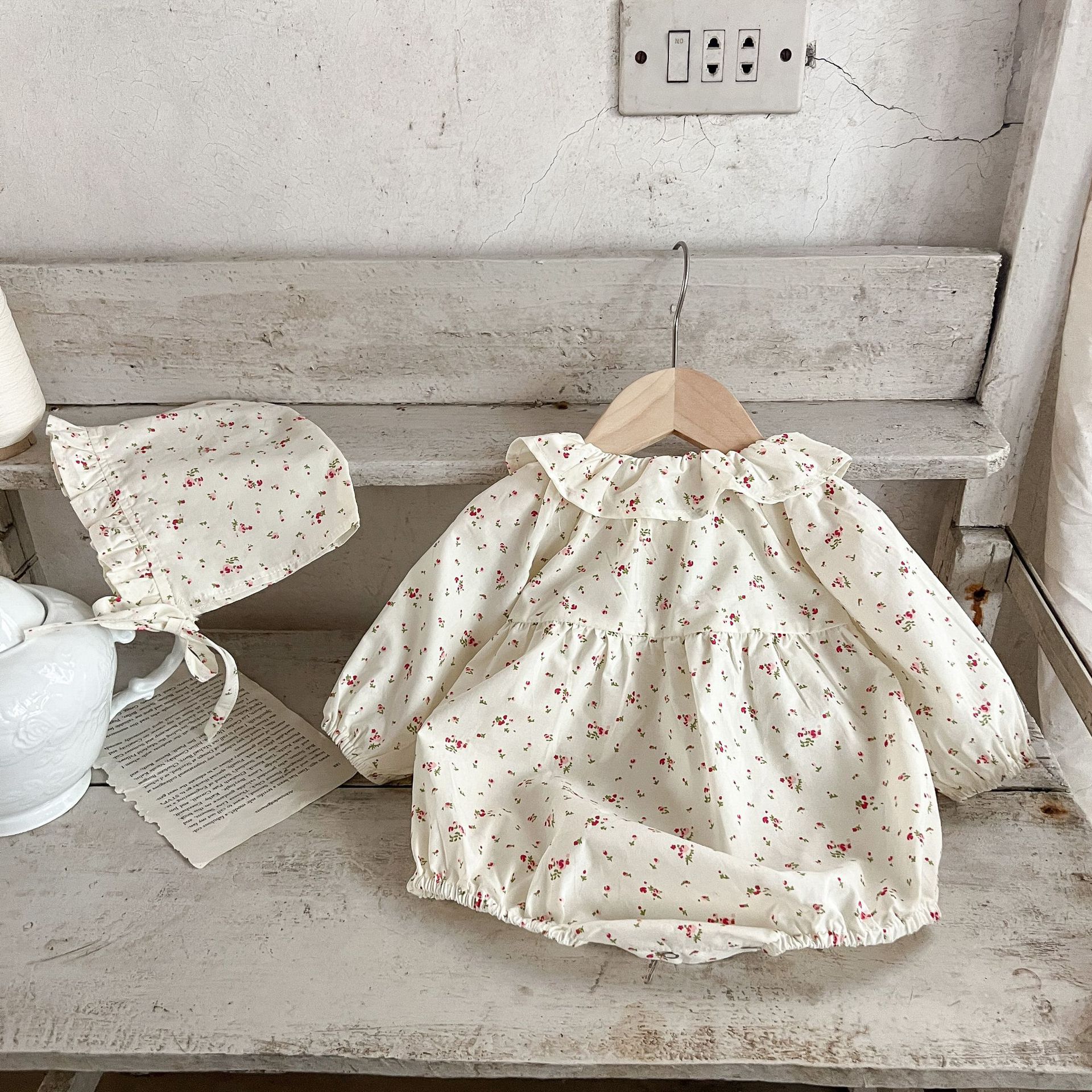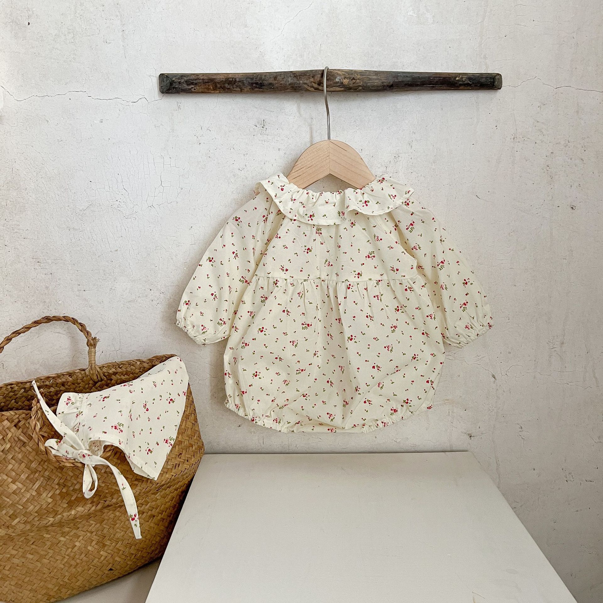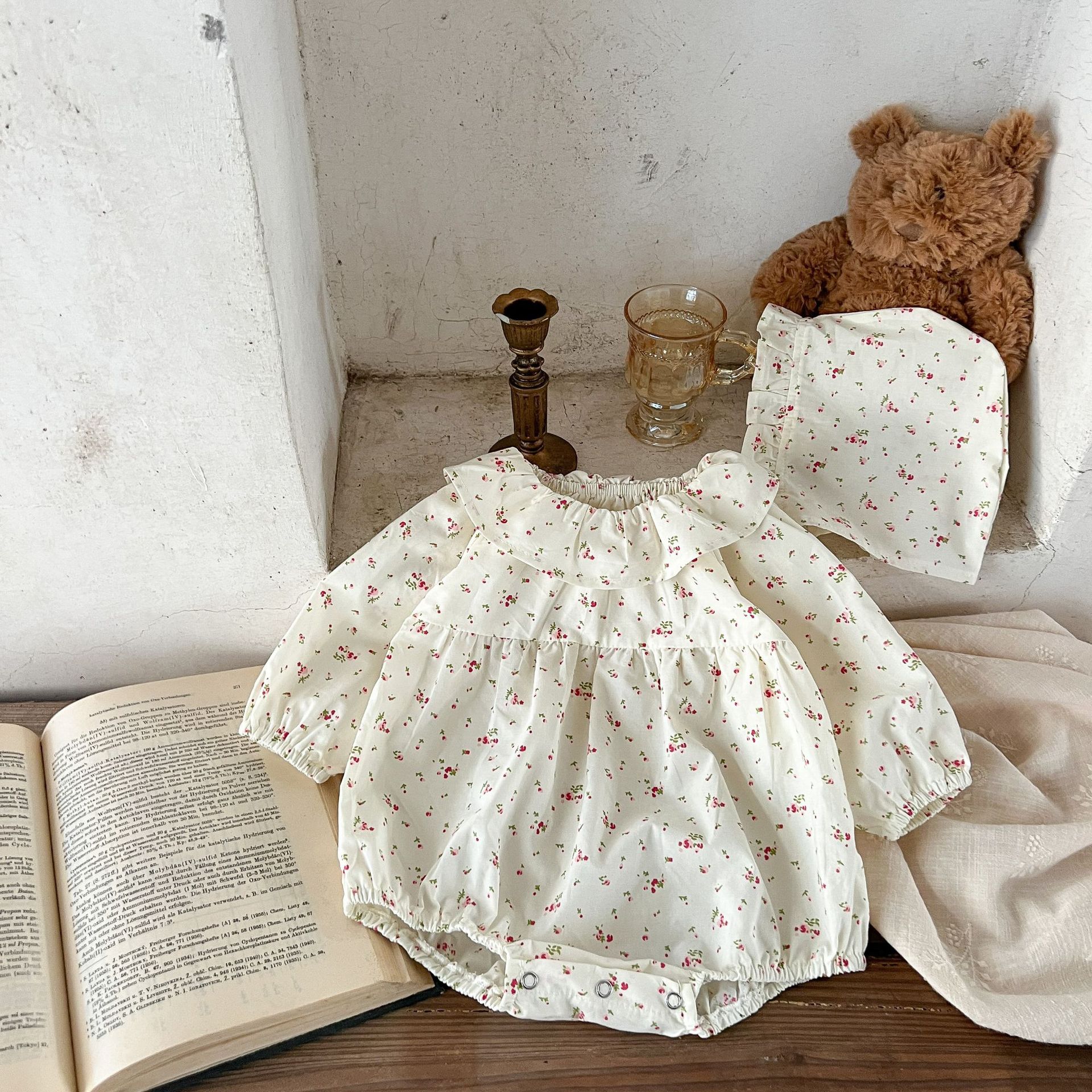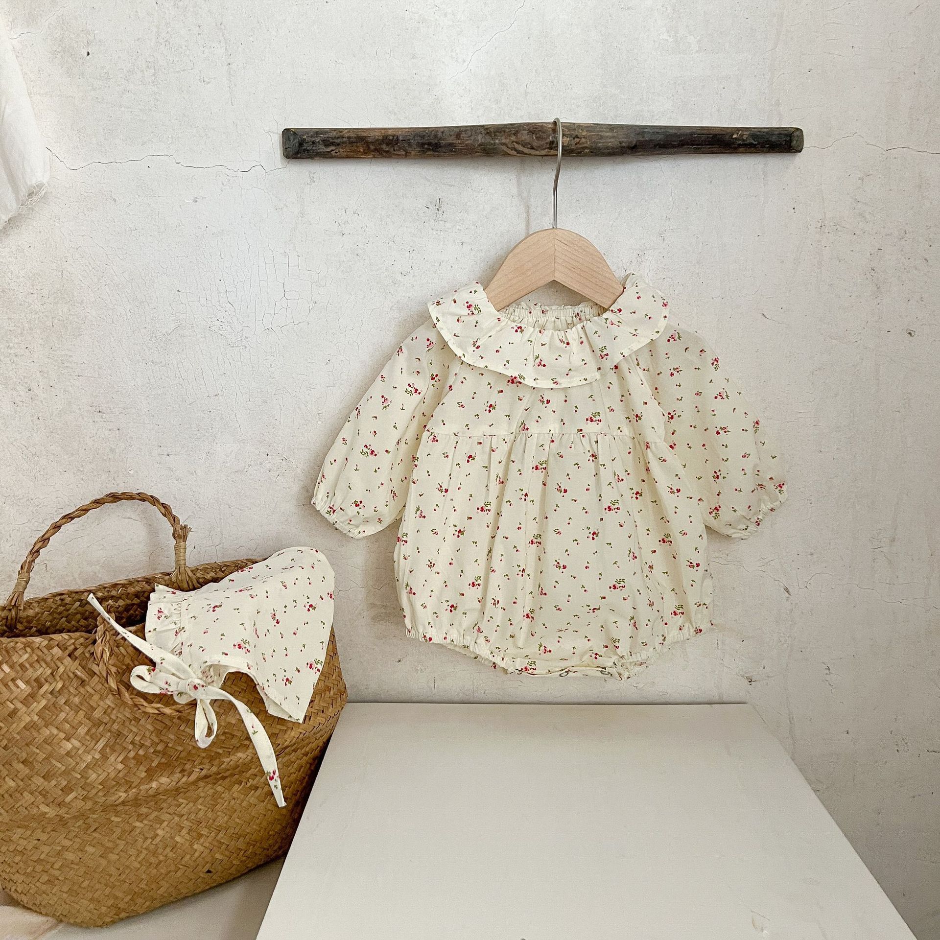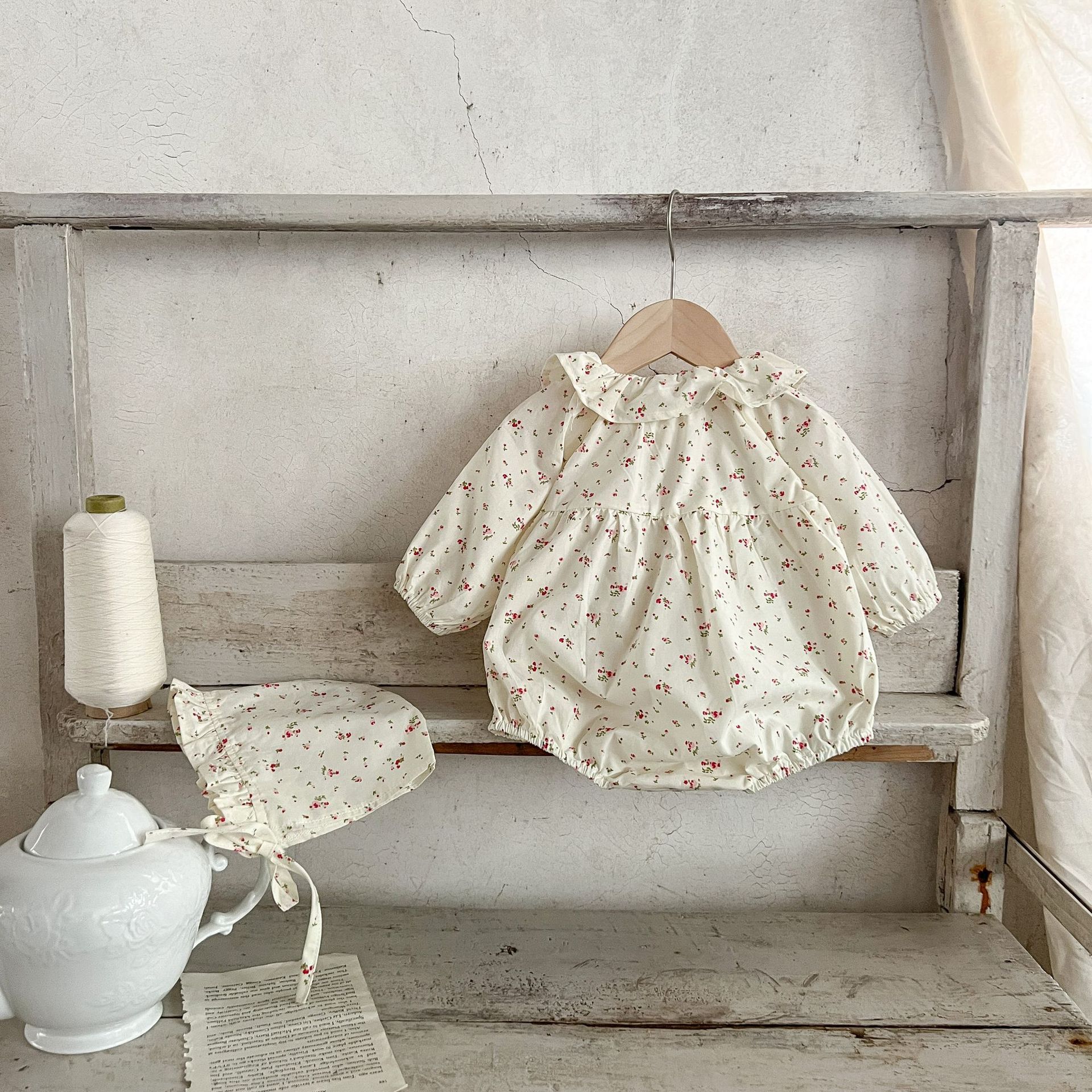 신생아 느슨한 순면 점프 슈트 삼각형 등반에서 한국 스타일 여자 아기 연꽃 칼라 꽃 후드 후드스토어 가기