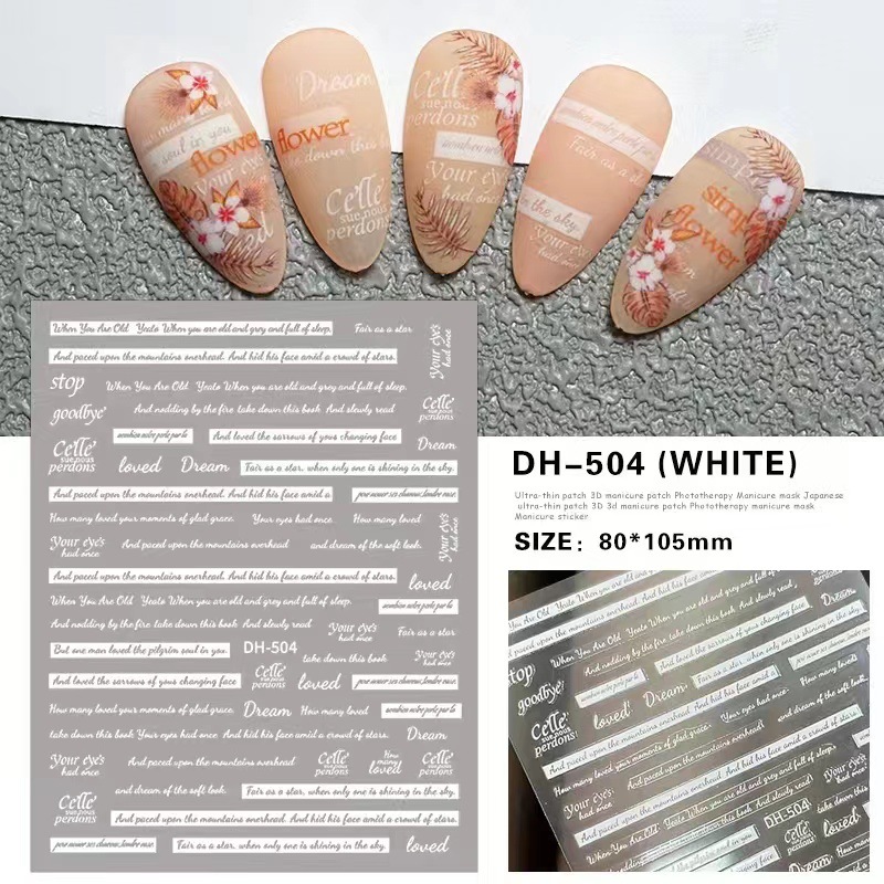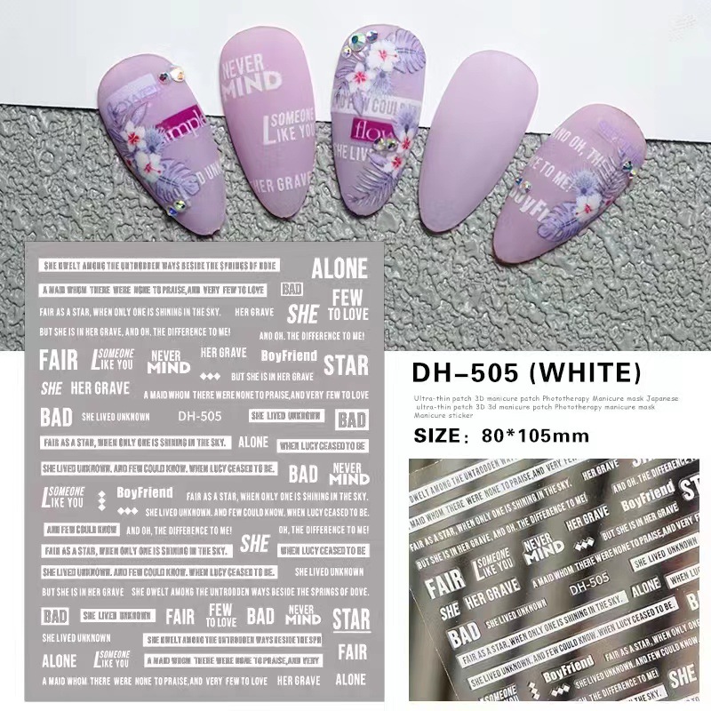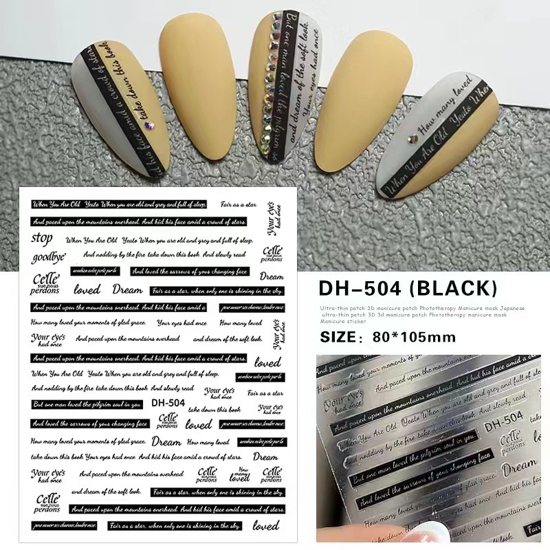 네일 아트 새로운 접착 스티커 흑백 필기 블록 글자 두껍고 얇은 텍스트 표현 DH504-505 독립적 인 복장