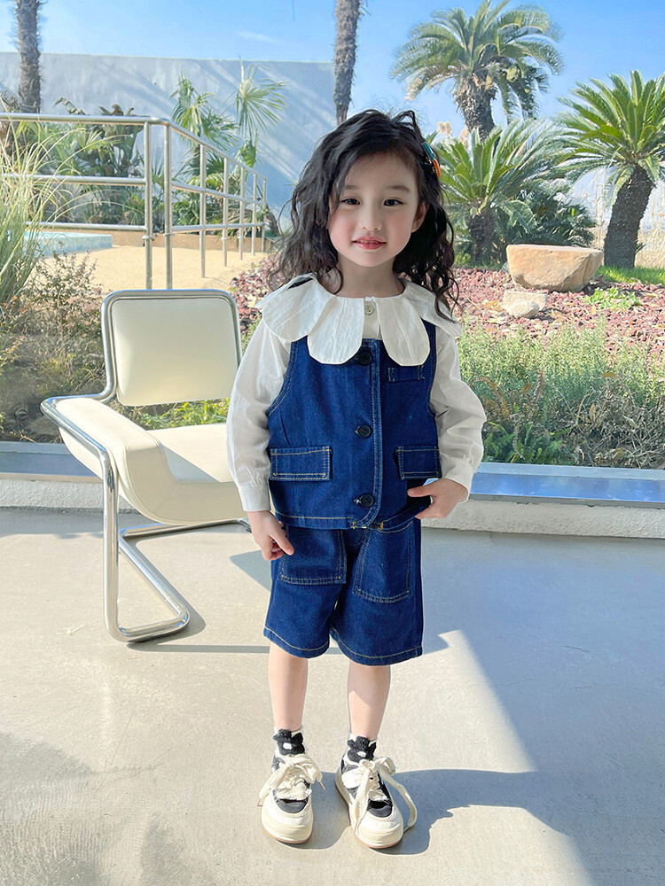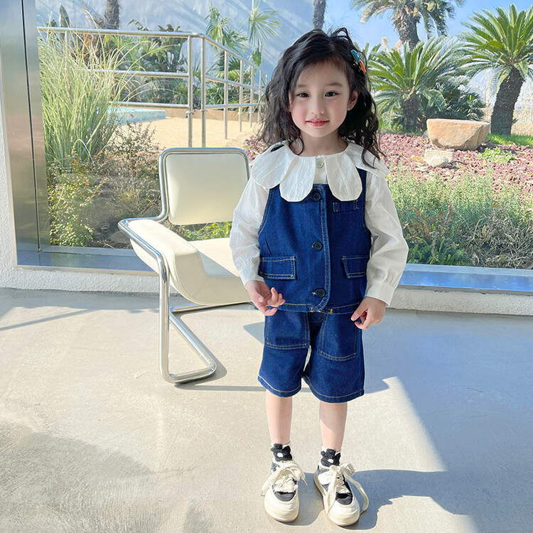 포 가족 아기 소녀 데님 세트 봄 새로운 아기 어린이 데님 재킷 조끼 어린이 세트 한국 스타일스토어 가기