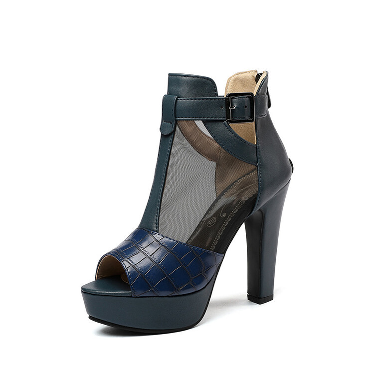 2023 여름 생선 입 신발 두꺼운 바닥 두꺼운 굽 하이힐 지퍼 메쉬 샌들 대외 무역 40-50 사이즈 신발 도매