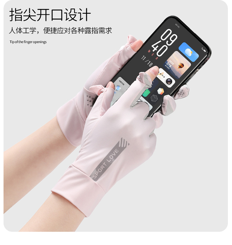 태양 보호 장갑 여성 여름 야외 운전 사이클링 얼음 실크 짧은 얇은 통기성 미끄럼 방지 핑거리스 터치 스크린