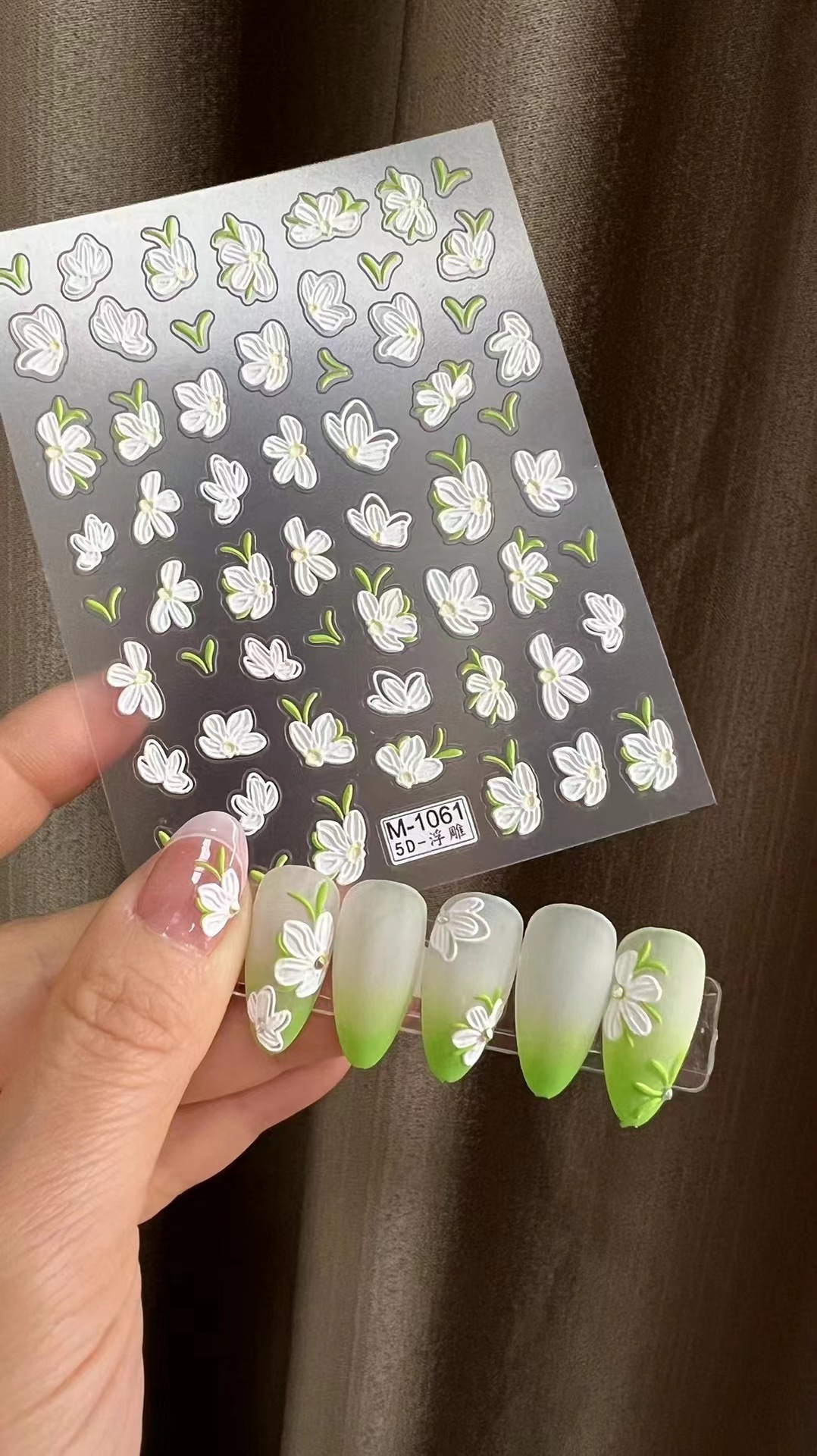 네일 접착제 새로운 순수한 흰색 동백 신선한 꽃 3 차원 양각 M-1061 네일 데칼 종이 카드 포장스토어 가기